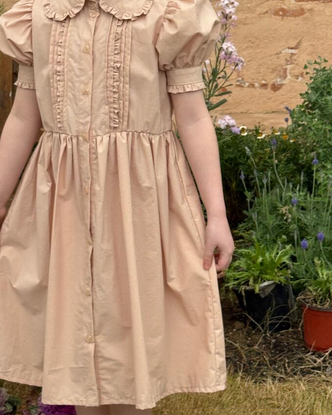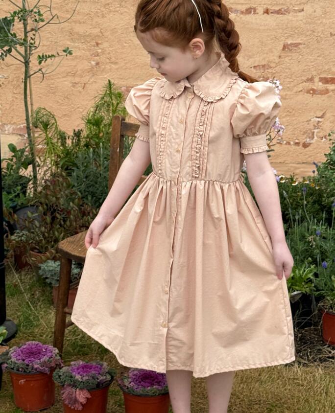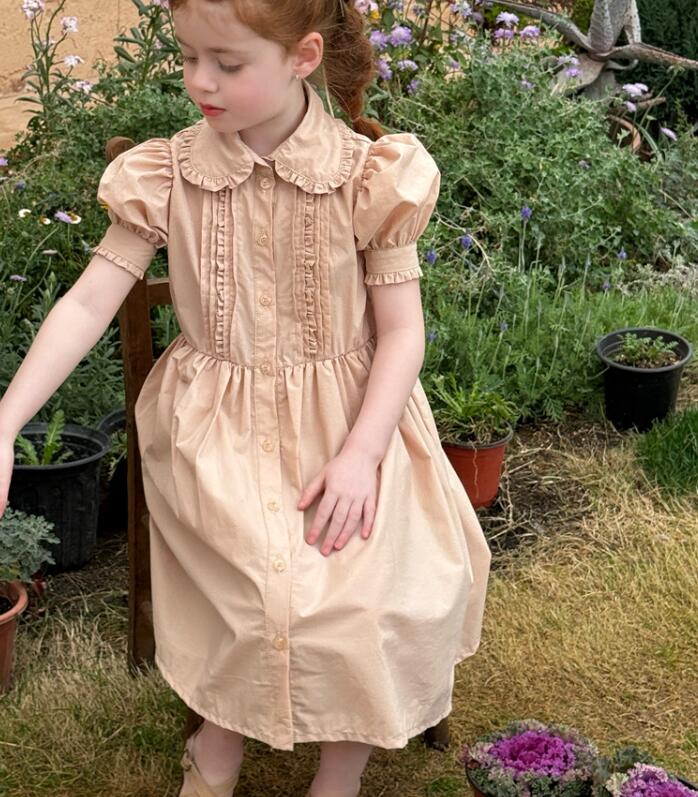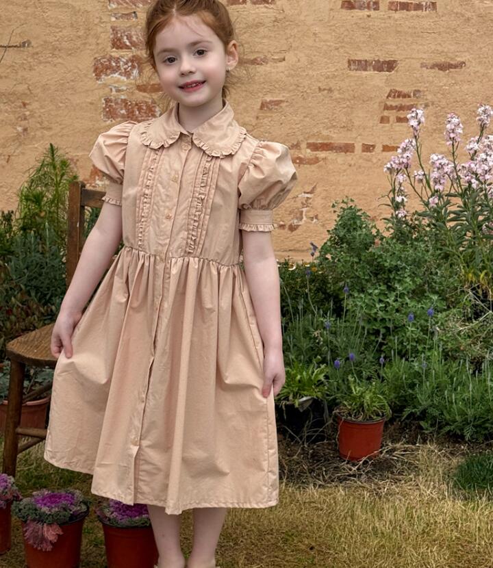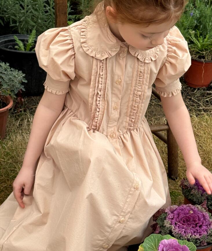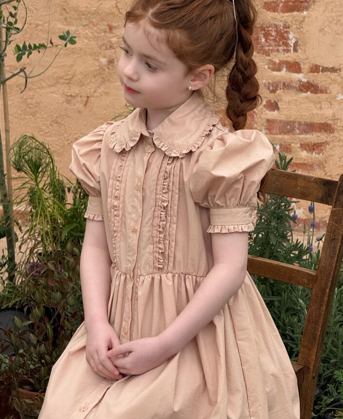 可愛らしいフリル襟とパフスリーブがお子様を優雅に演出します。