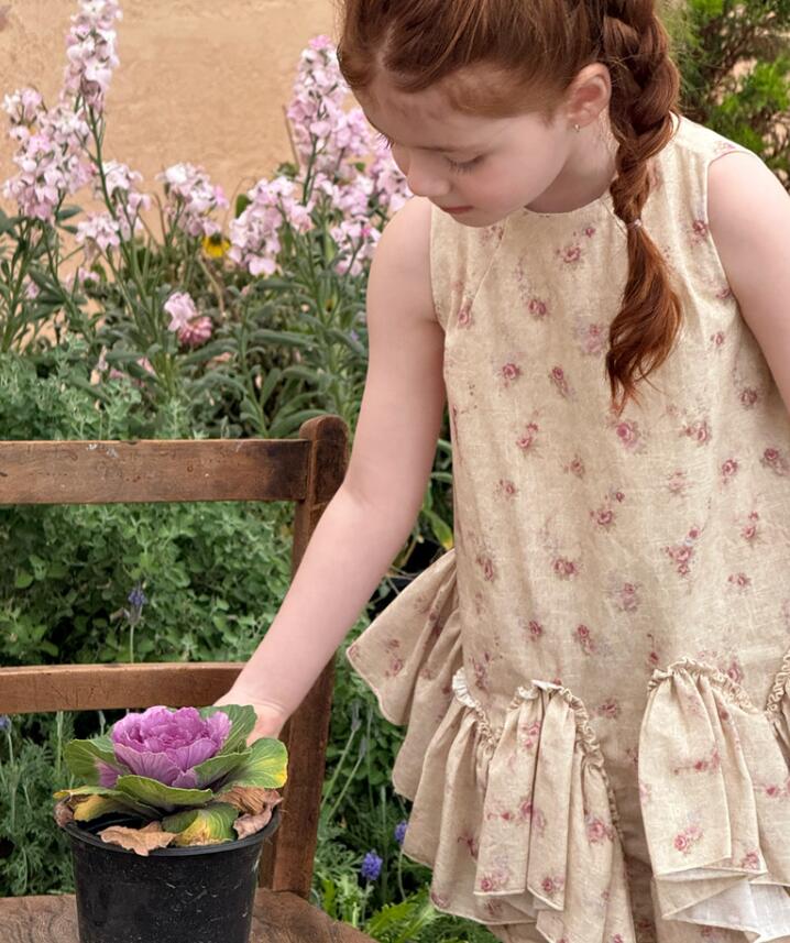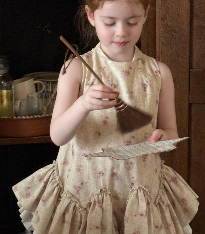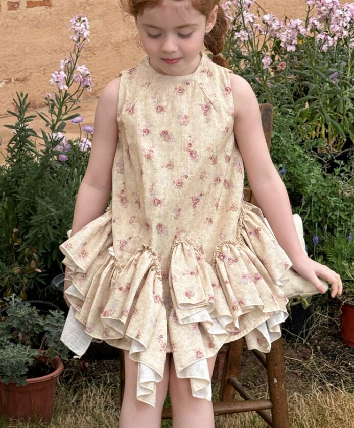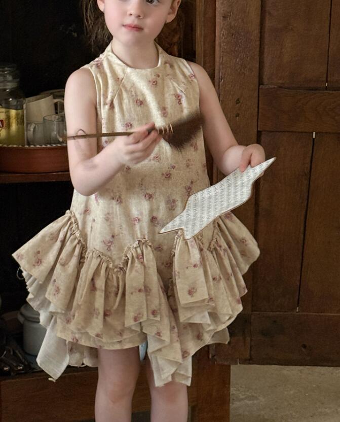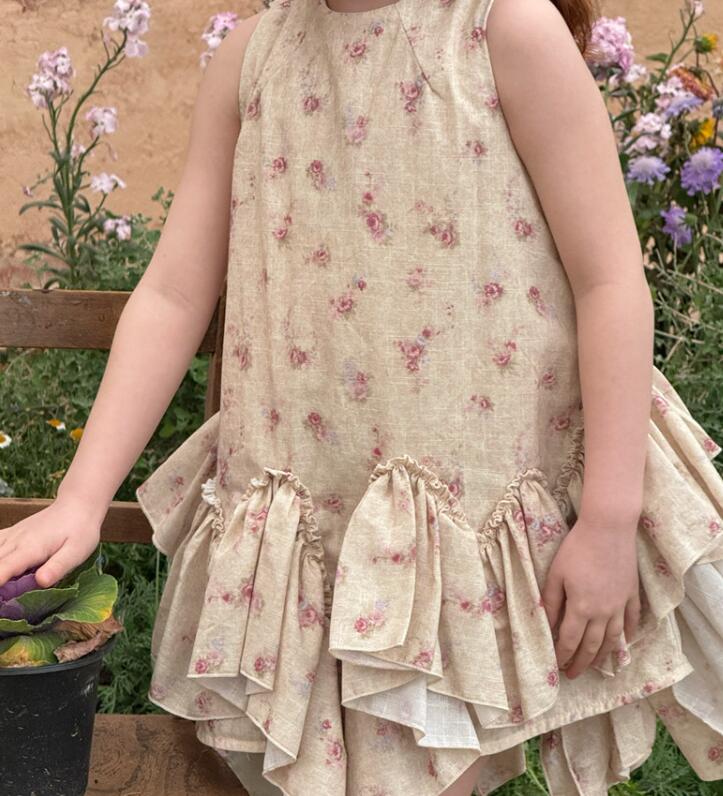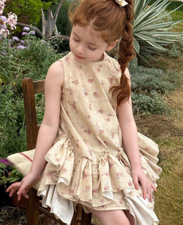 可愛らしい小花柄が魅力的なキッズ用袖なしワンピースです。