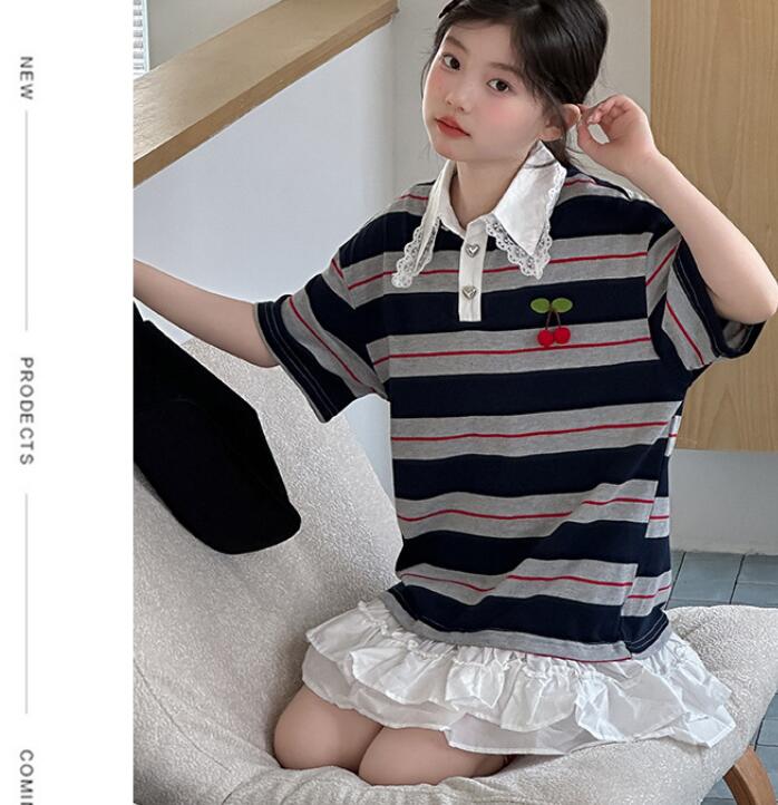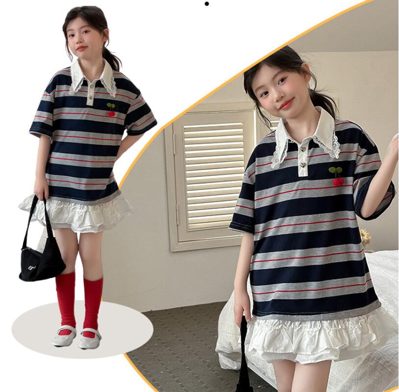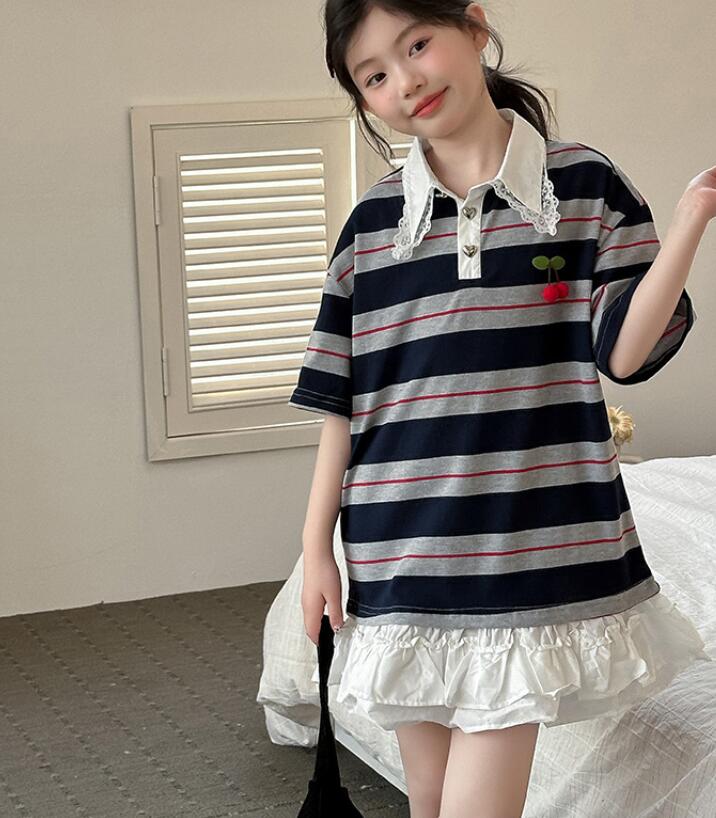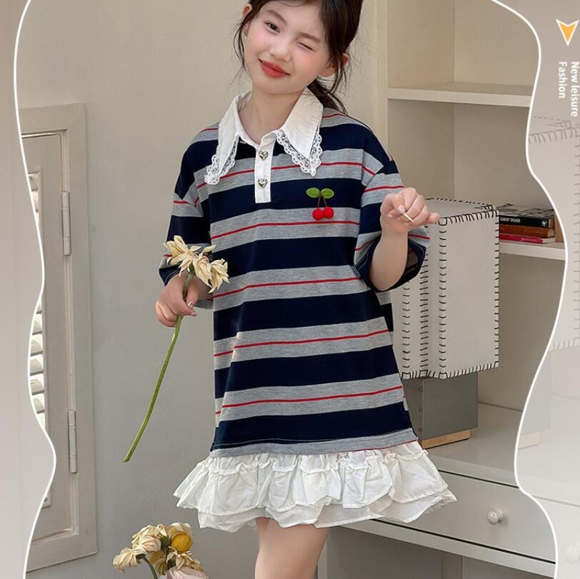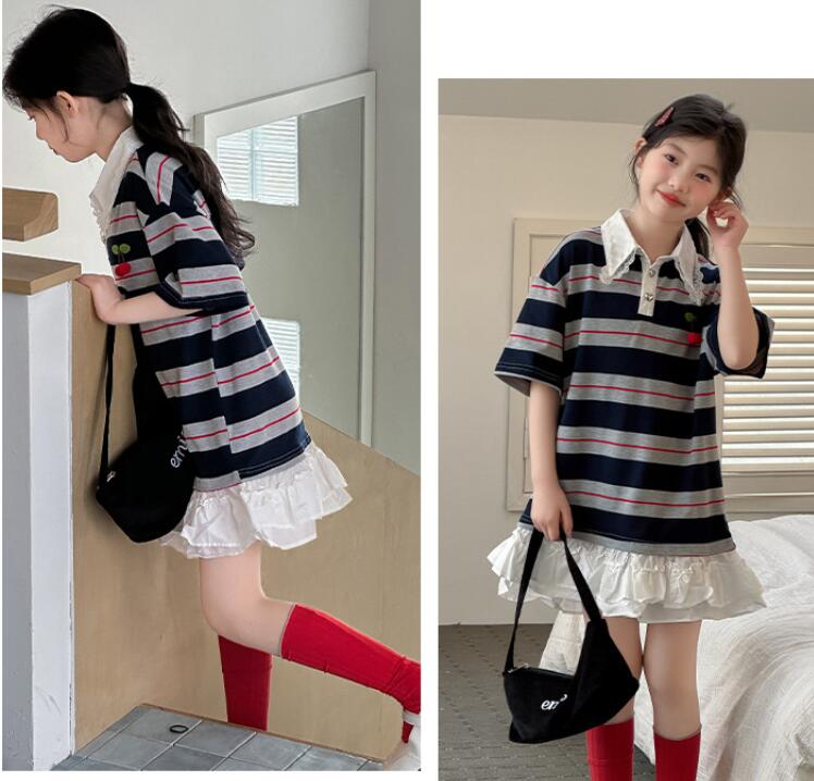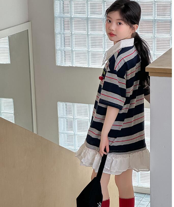 可愛いキッズ用の縞模様ロングワンピースです。 韓国風デザインの襟付きで上品な印象を与えます。 裾のフリルがガーリーで特別な日のお出かけにも最適です。 120から170センチまで幅広いサイズ展開でお子様の成長に合わせて選べます。