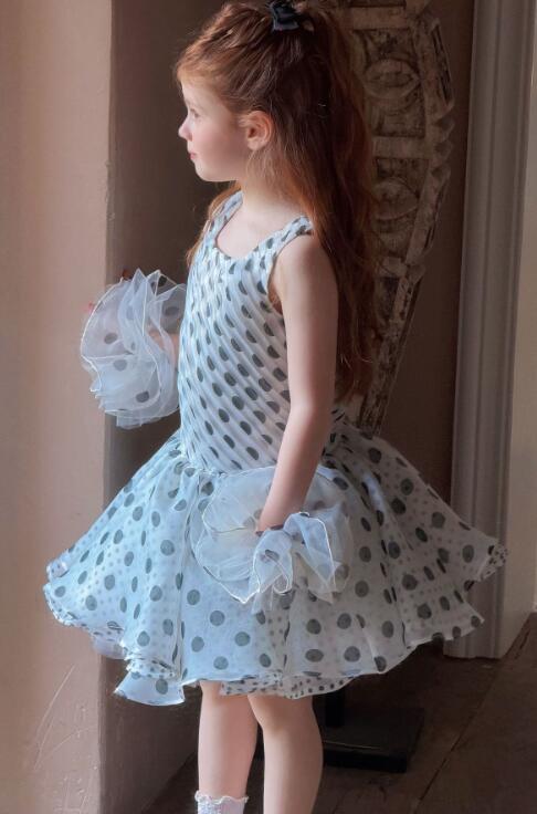 上品なドット柄とふんわりとしたシルエットで、特別な日にぴったり。