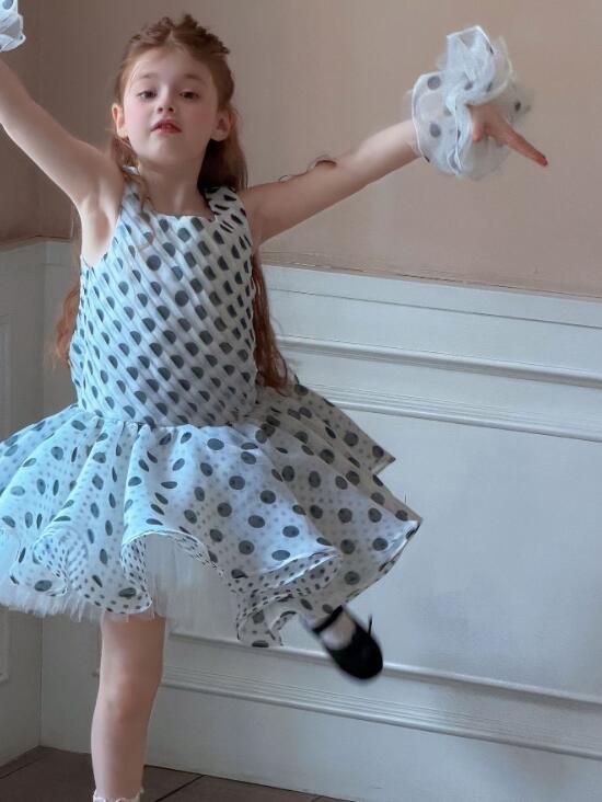 可愛らしい水玉模様が印象的なキッズ用ロングワンピースです。