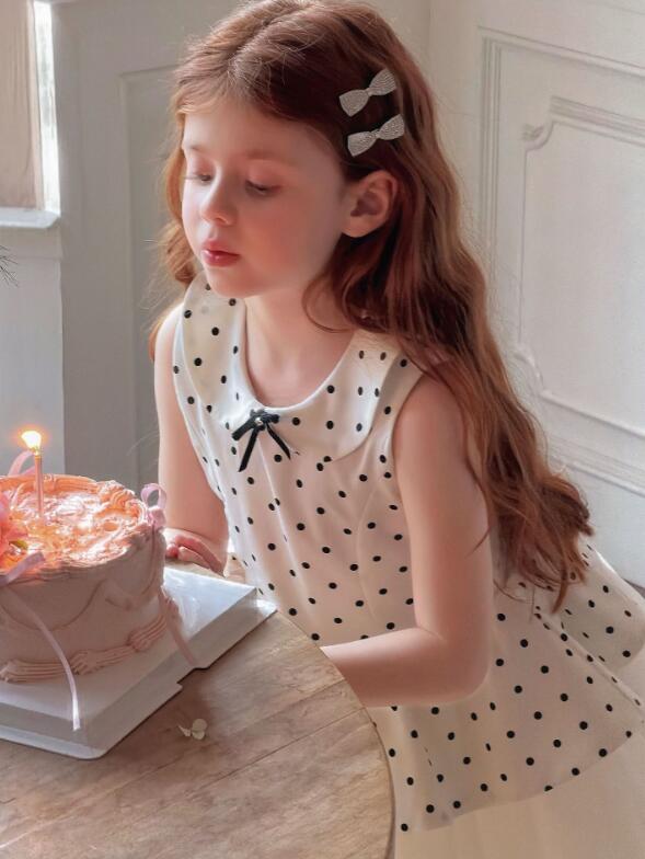 上品な水玉模様が可愛いキッズ用ロングワンピースです。