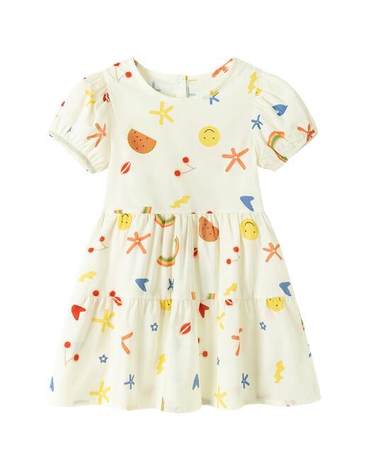 海の生き物たちが可愛く描かれたキッズ向けロングワンピースです。 白地にヒトデやタツノオトシゴなどカラフルな海洋柄がとても素敵。 90センチから140センチまでサイズ展開豊富で成長に合わせて選べます。 夏のお出かけや普段着にぴったりの一枚です。