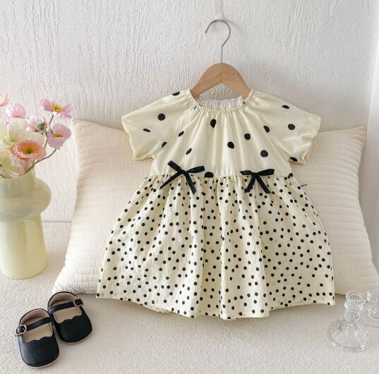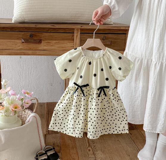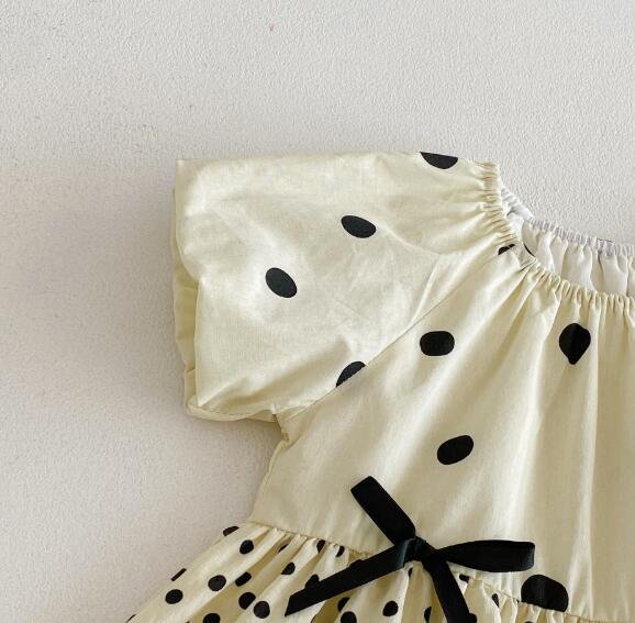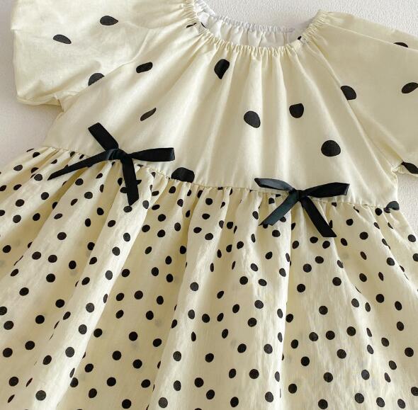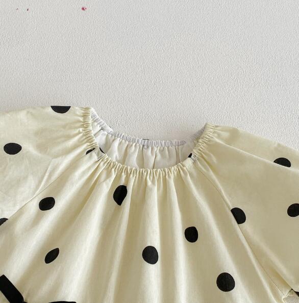 可愛い水玉模様が印象的なキッズ用ロングワンピース。