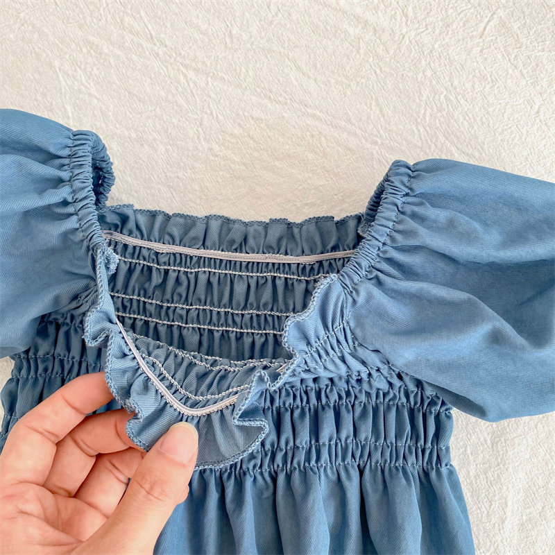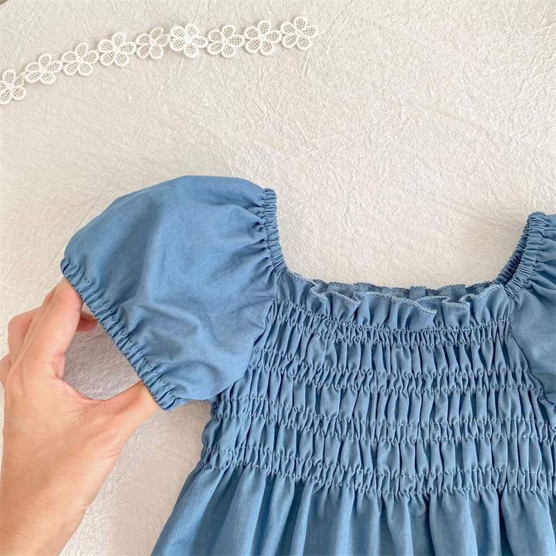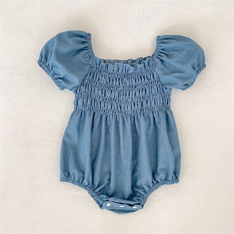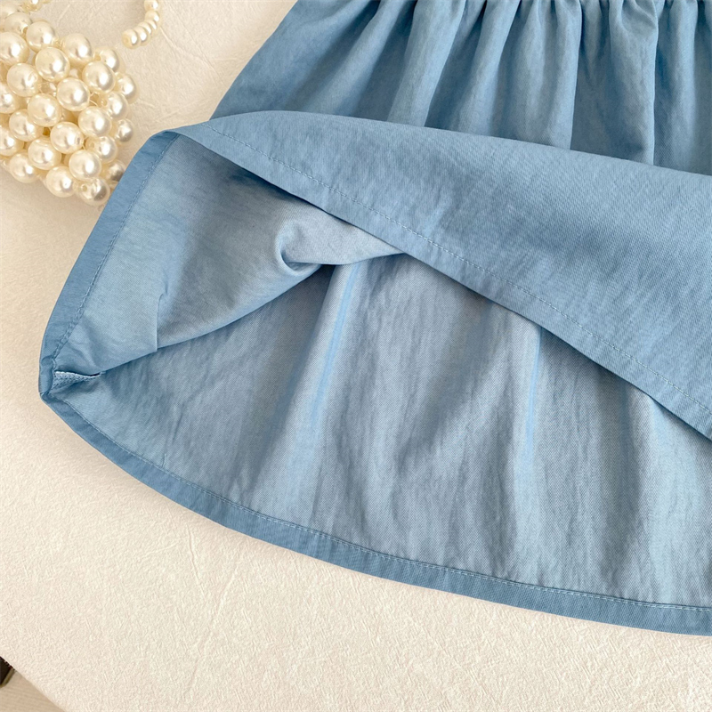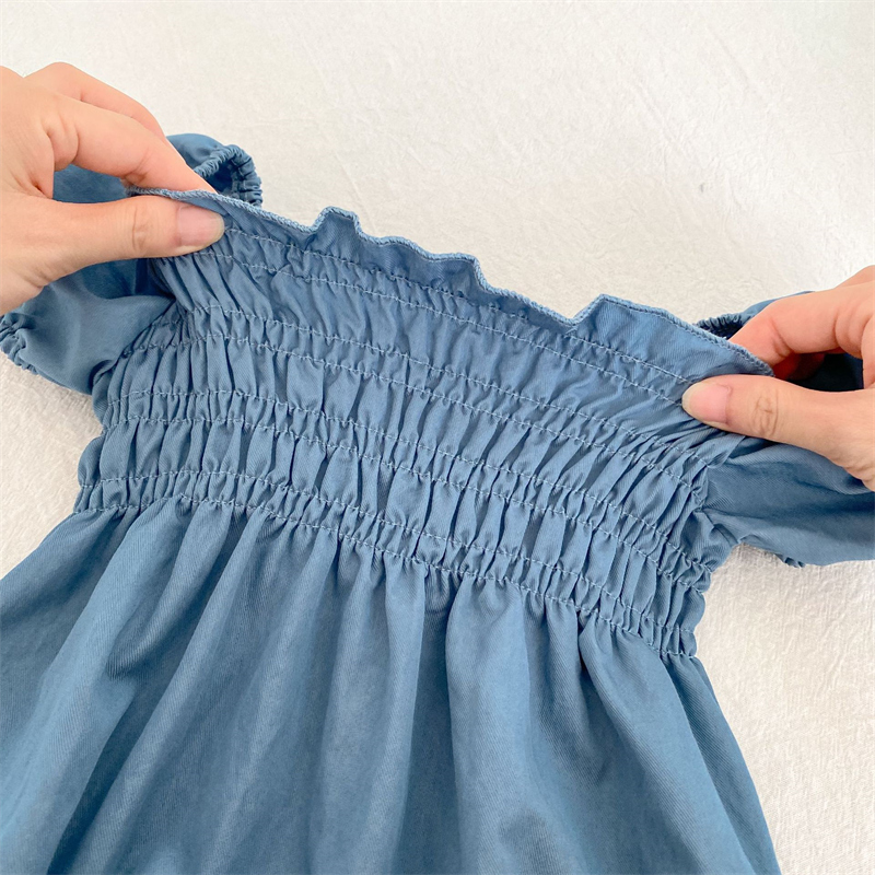 素材は肌に優しい綿100%を使用し、デニム風の爽やかなブルーカラーが魅力的です。