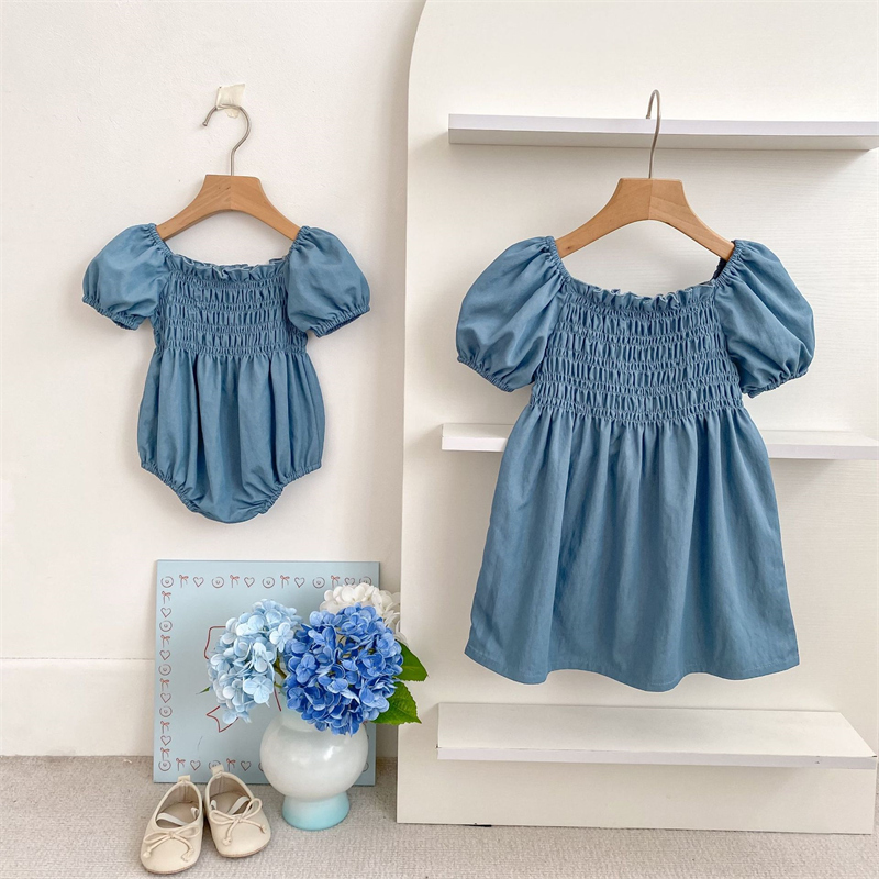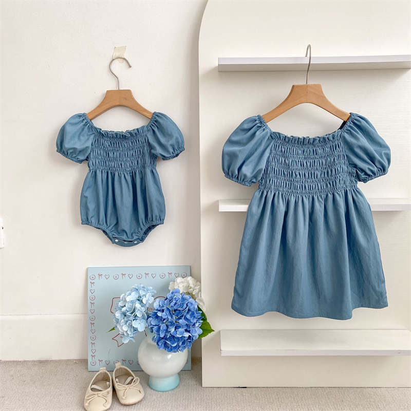 ロンパースとロングワンピースの2点セットで、姉妹でお揃いコーディネートが楽しめます。