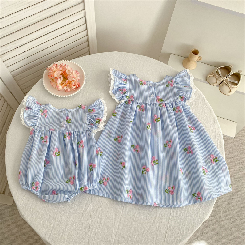 キッズ向け可愛い花柄刺繍の姉妹服セットです。