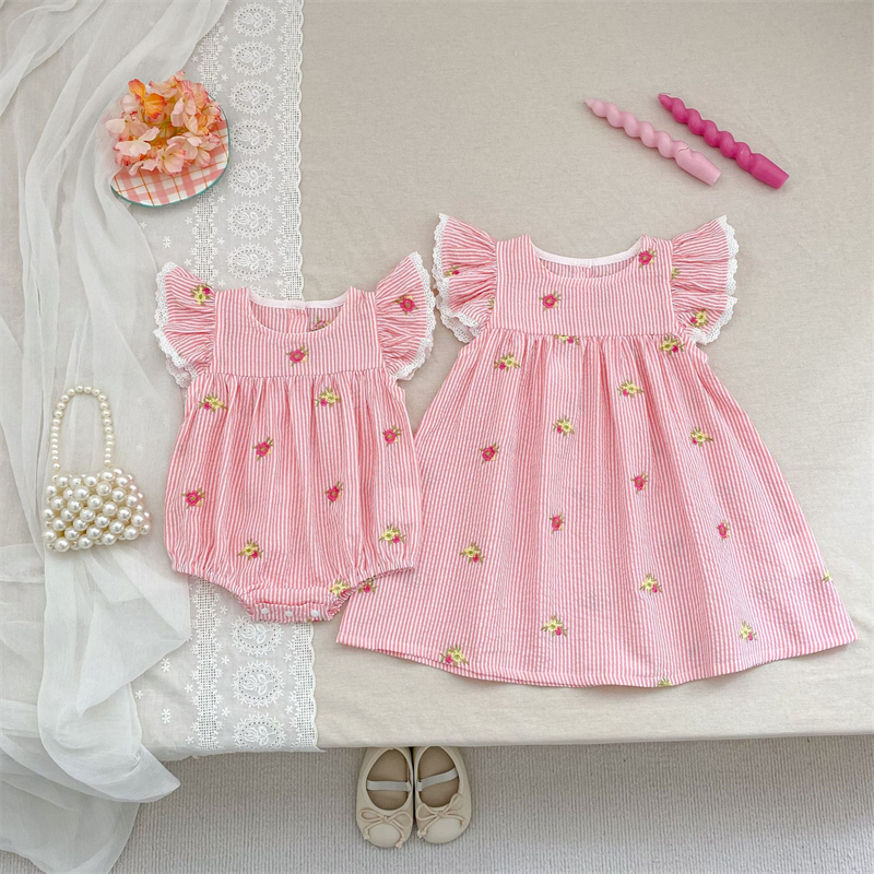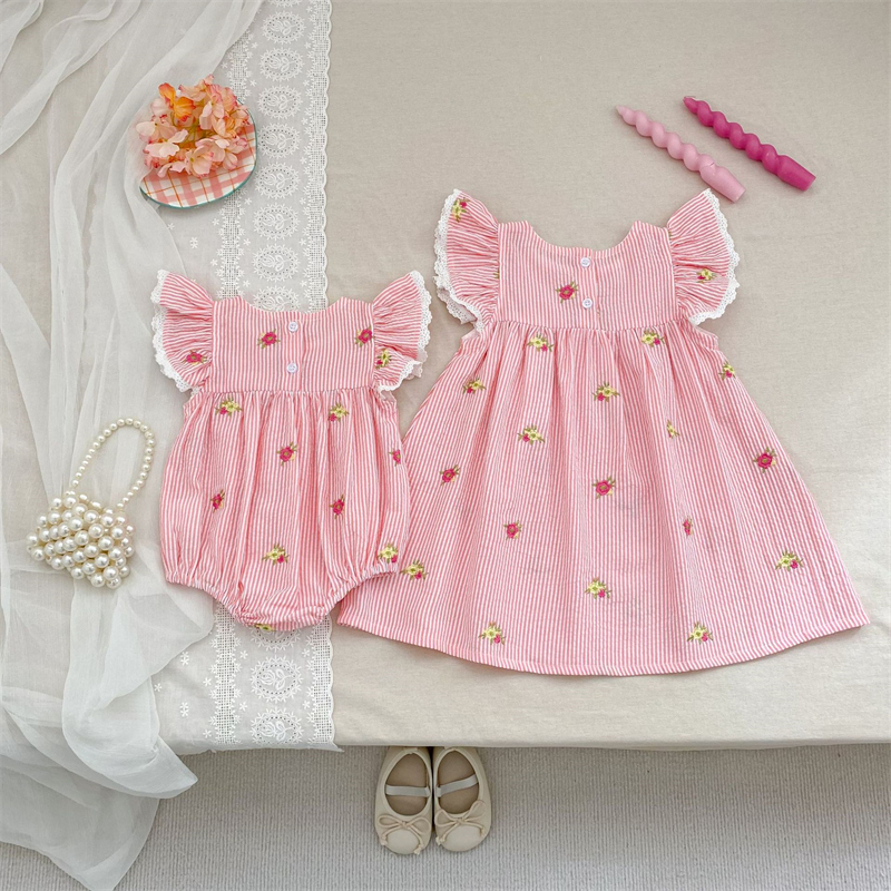 可愛い花柄刺繍が施されたキッズ用姉妹服のセットです。