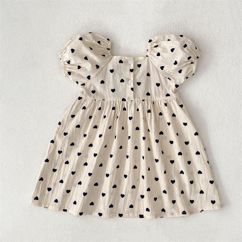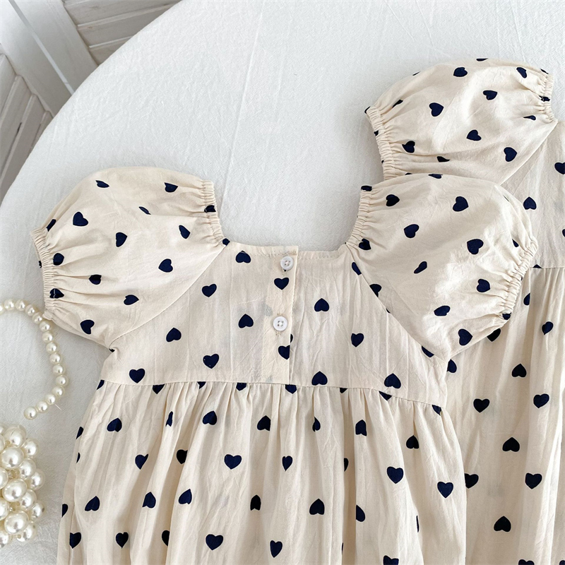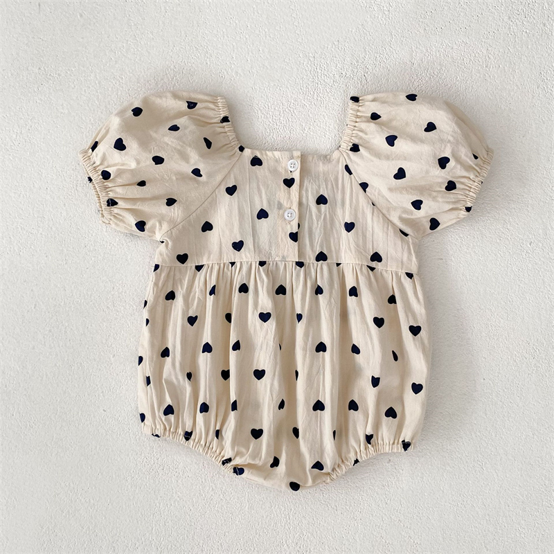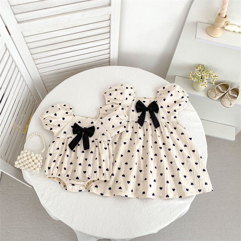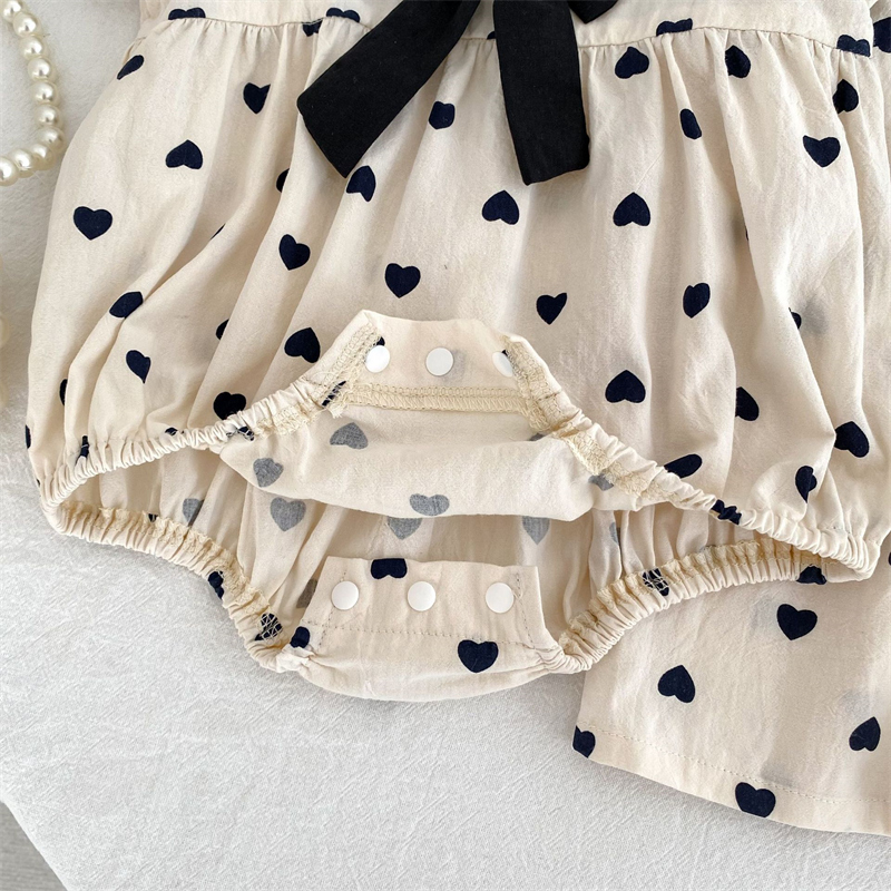 可愛いハート柄と黒リボンがポイントのロンパース・ロングワンピースセット。