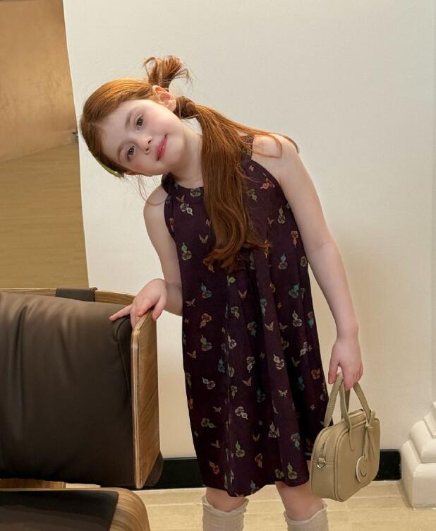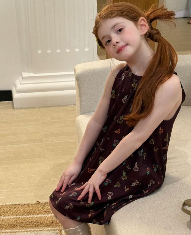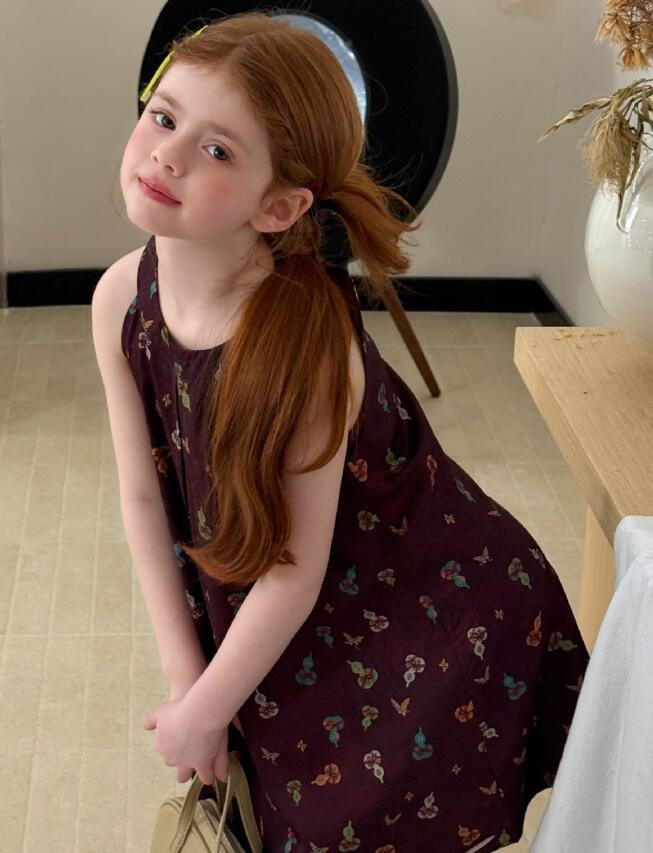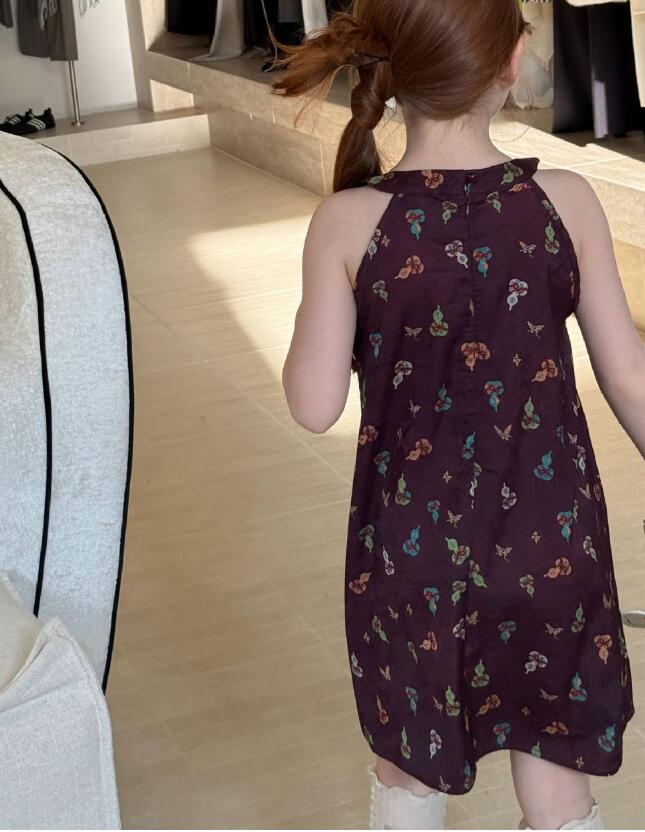 上品な花柄が美しいキッズ用ノースリーブワンピースです。