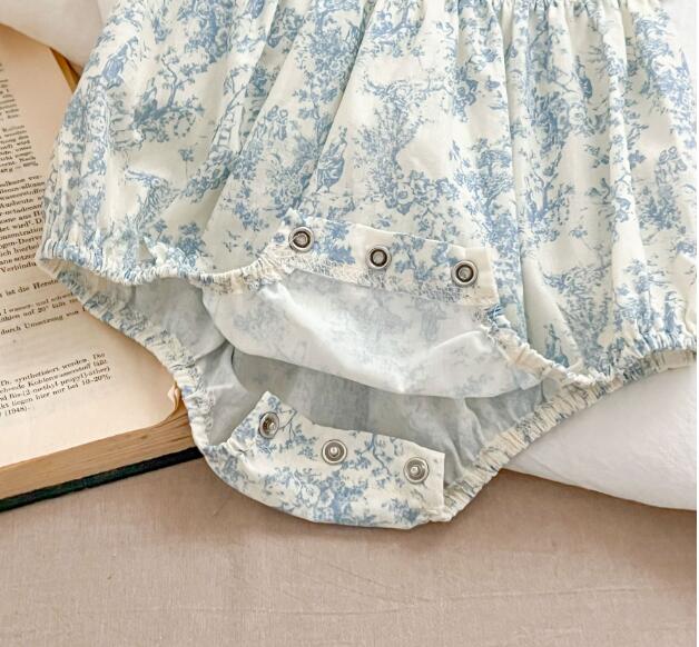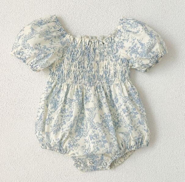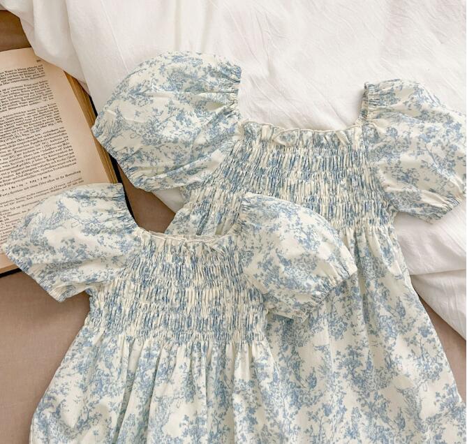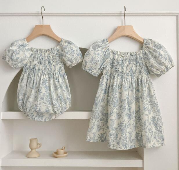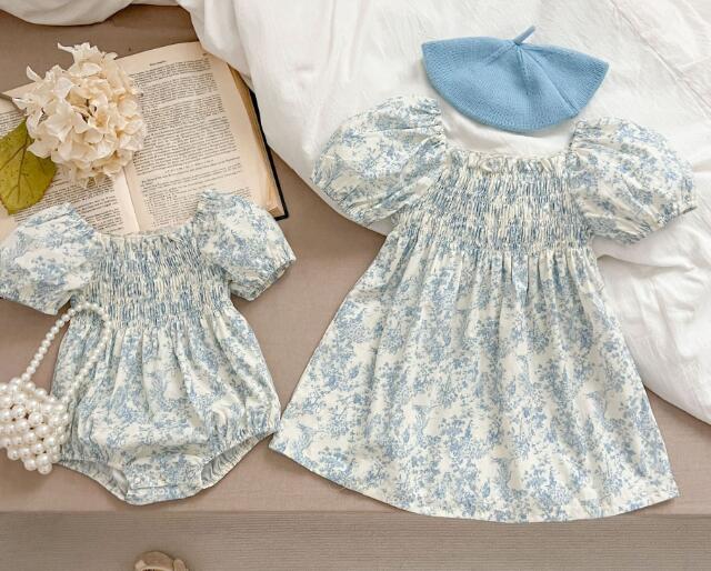 可愛い花柄が魅力的なキッズ向けロングワンピースとロンパースのセット商品です。 上品なブルー系フラワー柄でお出かけにもぴったり。 ふんわりパフスリーブとシャーリングデザインが女の子らしさを演出します。 姉妹でお揃いコーディネートも楽しめる二点セットです。