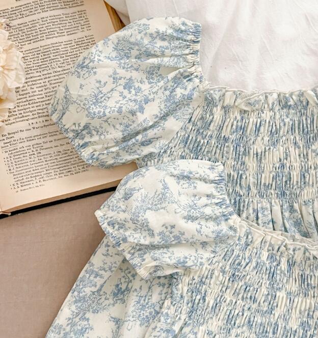 上品なブルー系フラワー柄でお出かけにもぴったり。