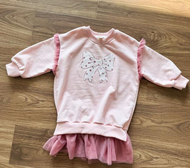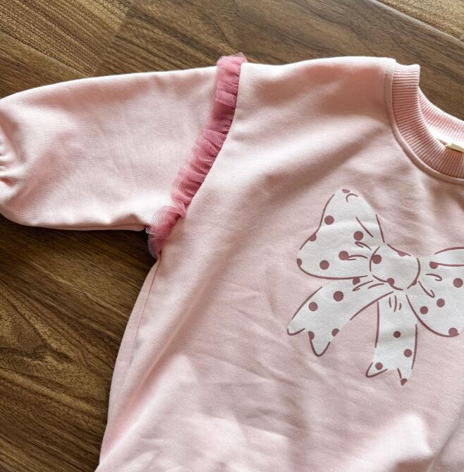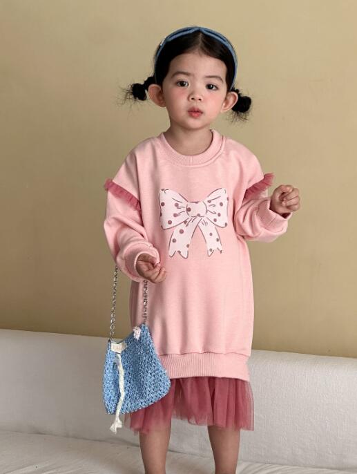 可愛らしいリボン柄がポイントのキッズ用ロングワンピース。