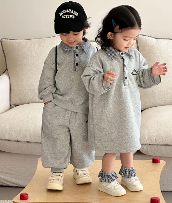 おしゃれなキッズ服の姉妹兄弟でお揃いコーデが楽しめる韓国風セットアップです。