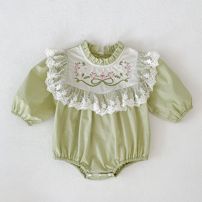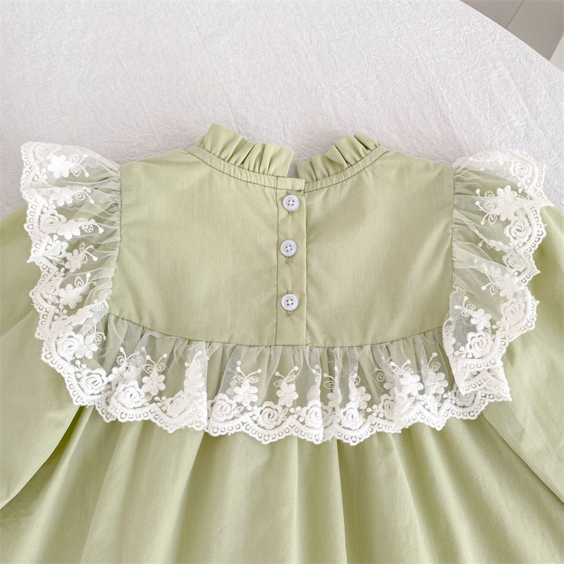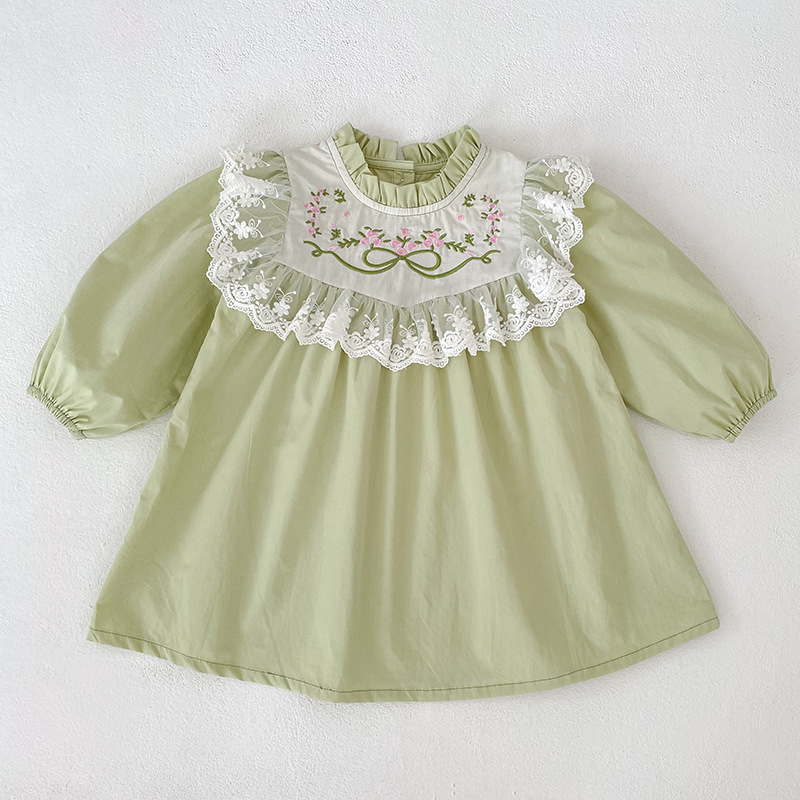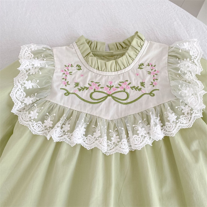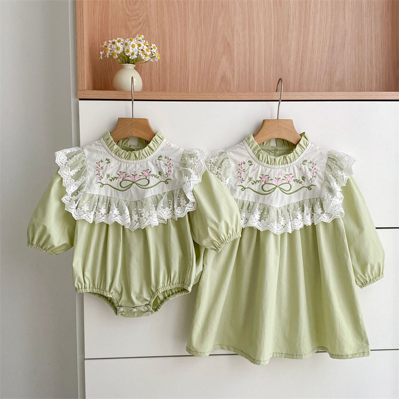 綿100%の優しい素材で作られた、立ち襟と花柄刺繍が上品な姉妹服セットです。