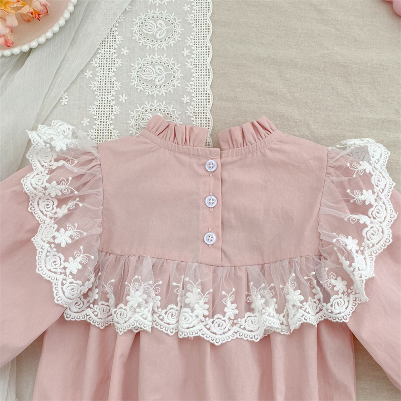 立ち襟デザインとレース装飾が上品な印象を演出します。
