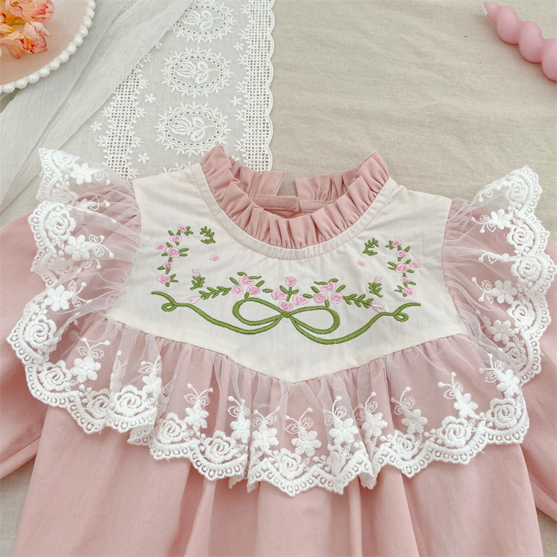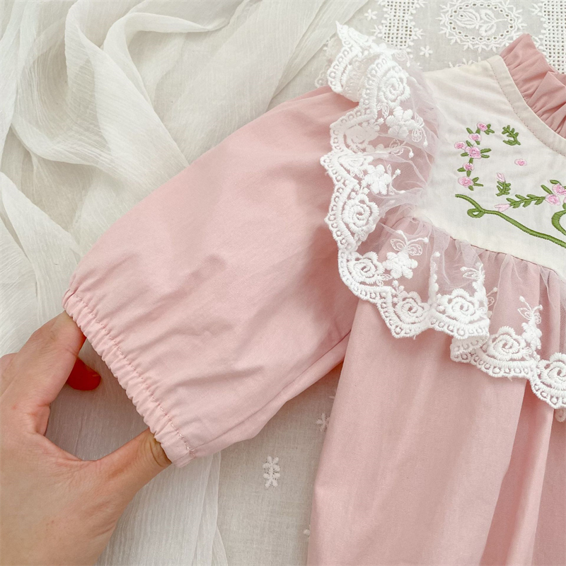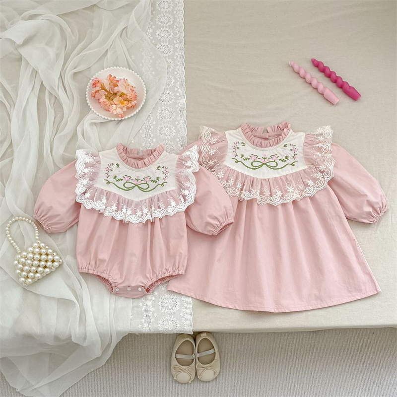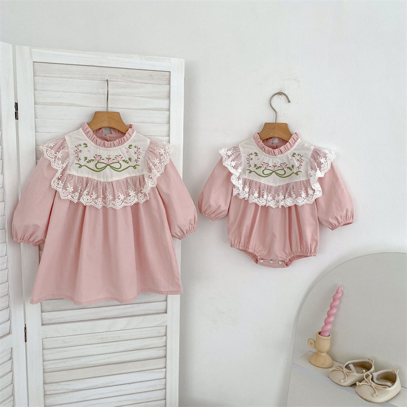 可愛らしい刺繍花柄が特徴のキッズ姉妹服セットです。