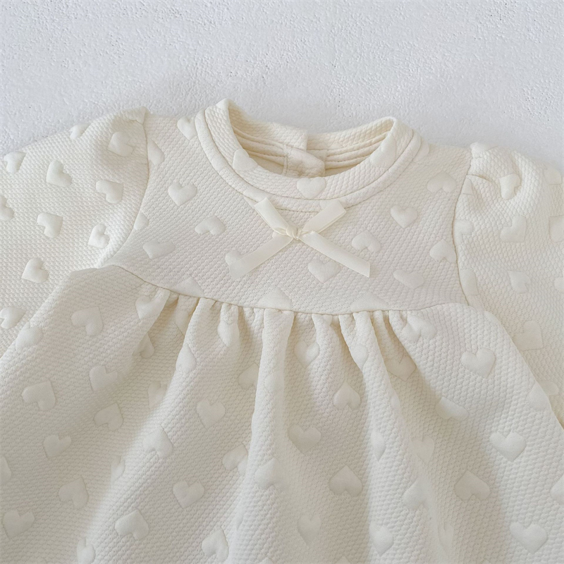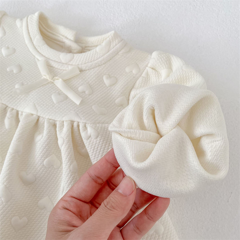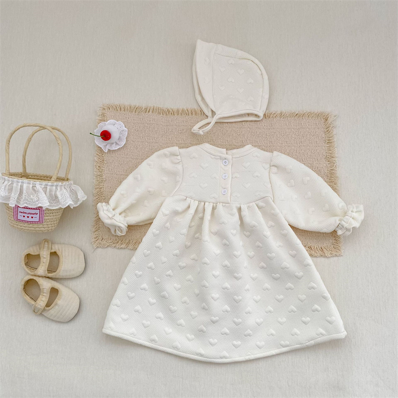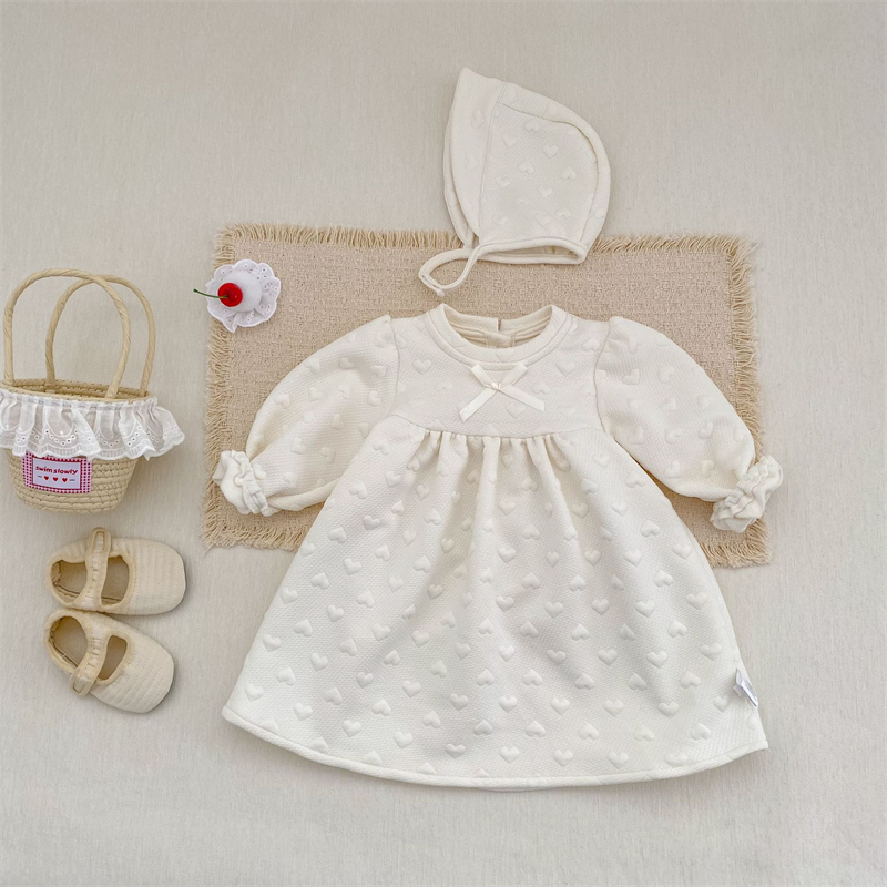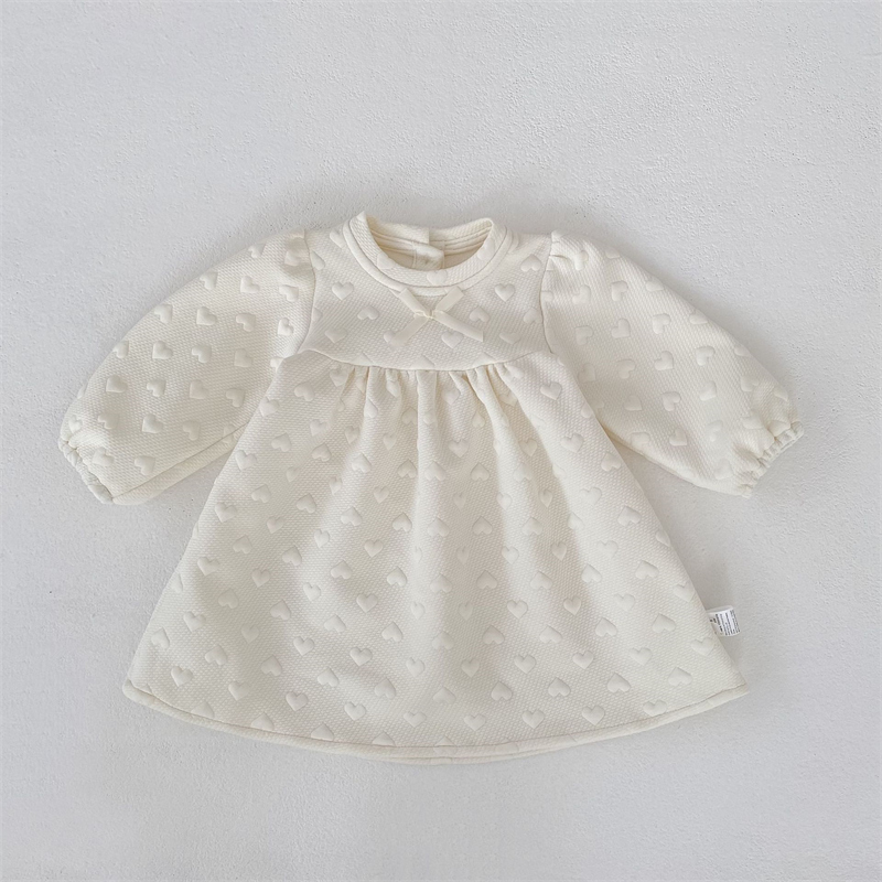 可愛いハート柄が魅力的なキッズ用ロングワンピースです。