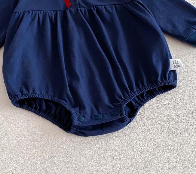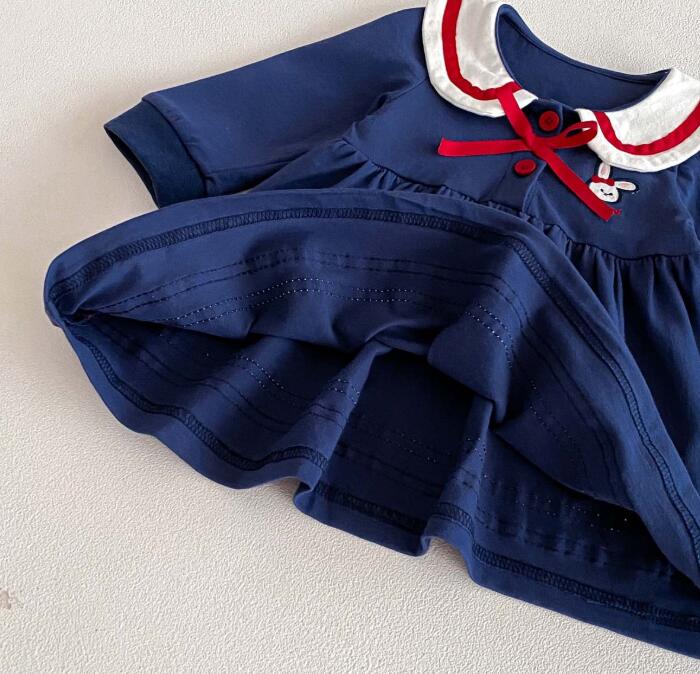 白い丸襟と赤いパイピングが可愛らしいアクセントになっています。