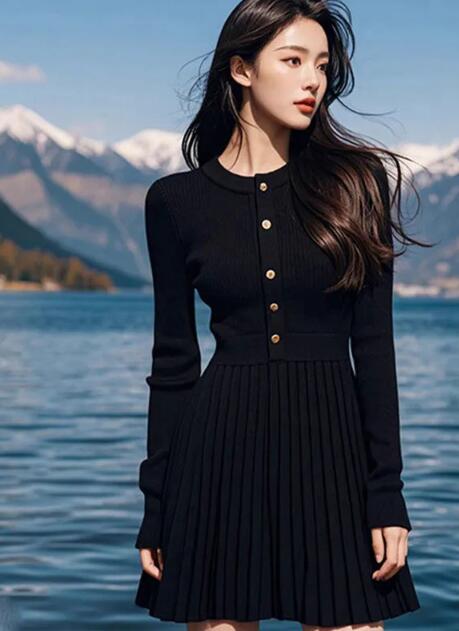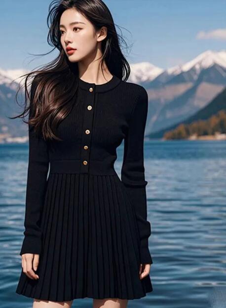 上質なニット素材を使用した長袖ミニワンピースです。 金ボタンが上品なアクセントを演出し、プリーツスカートが女性らしいシルエットを作ります。 ロングワンピースも豊富に取り扱う当店の人気アイテムで、デートや普段使いにも最適です。 着回し力抜群で一枚で様になる万能アイテムです。