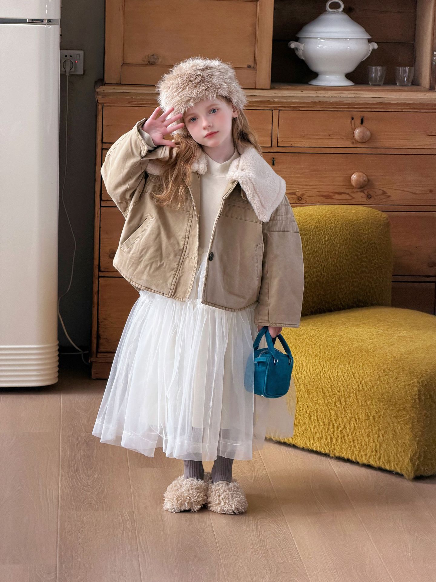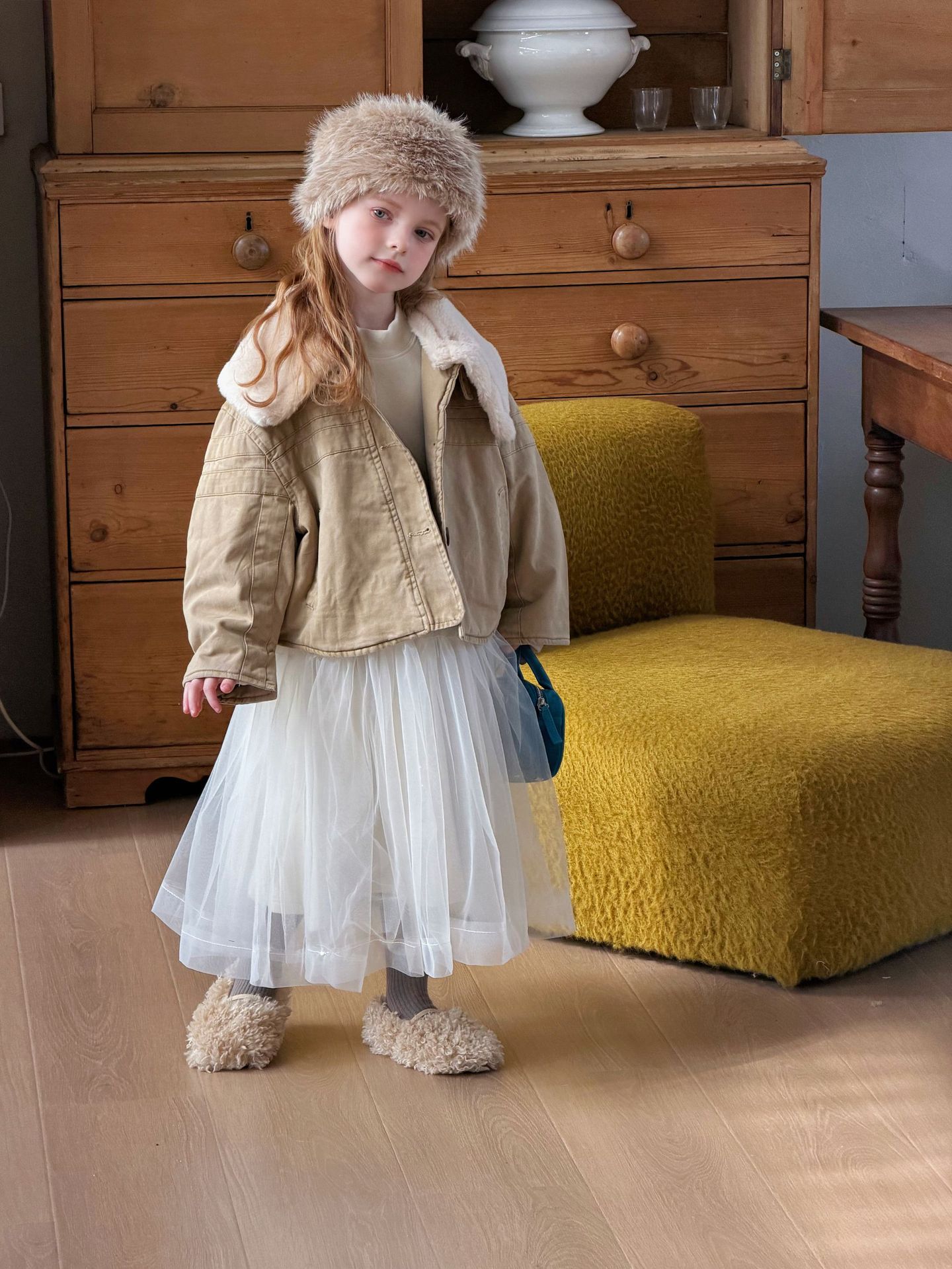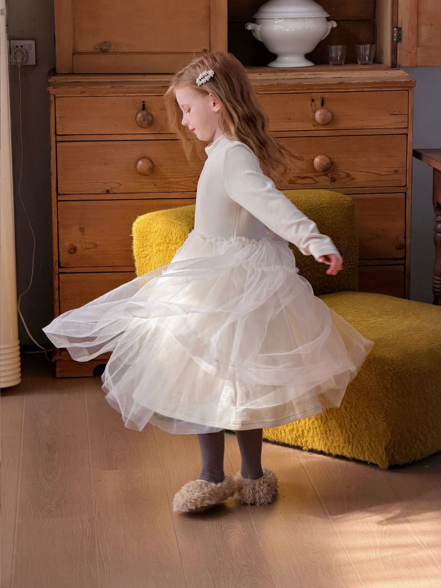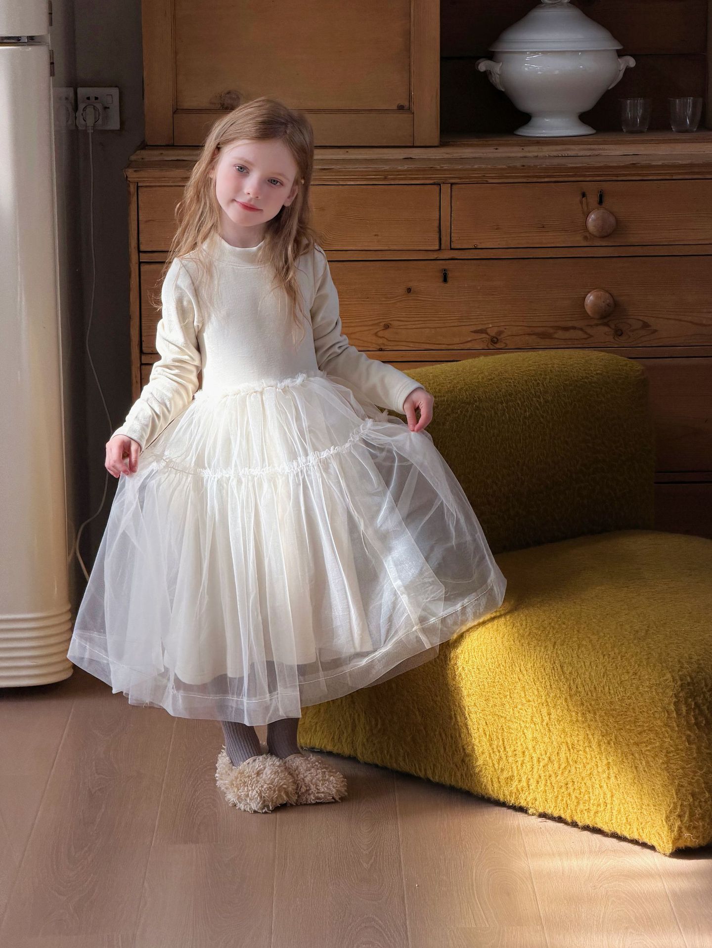 上品な白色チュール素材を使用したキッズ用ロングワンピースです。