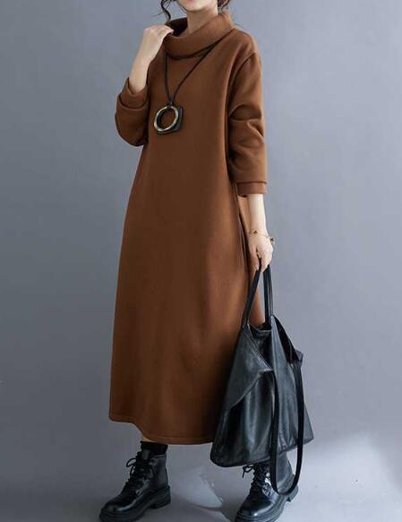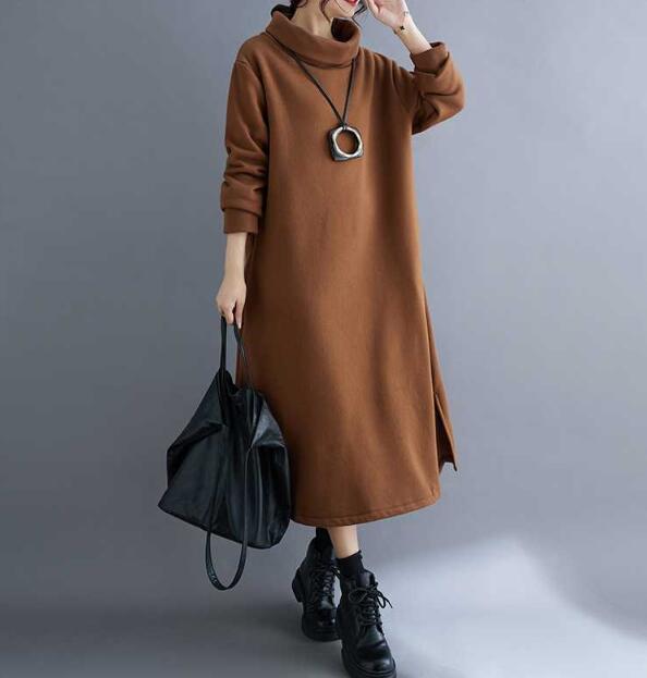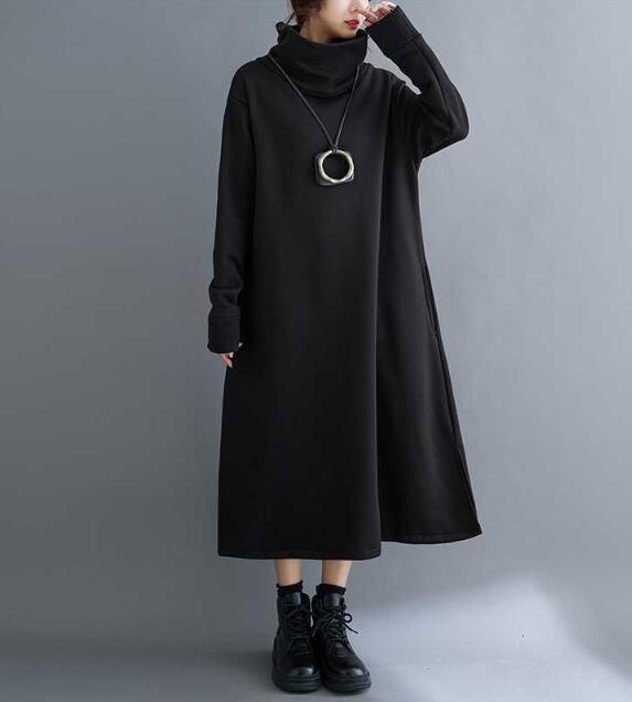 秋冬にぴったりの厚手素材を使用したタートルネックロングワンピース。