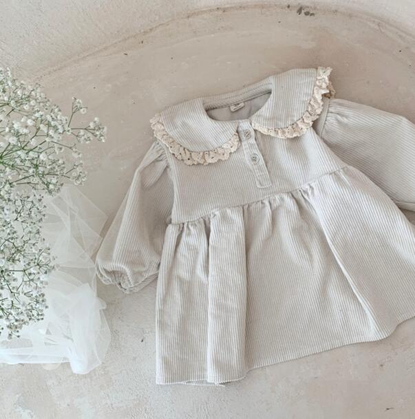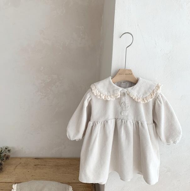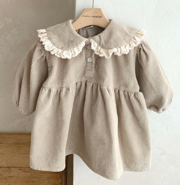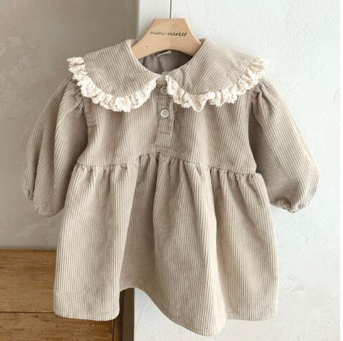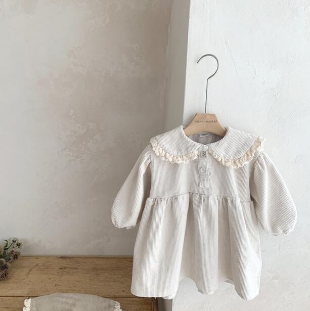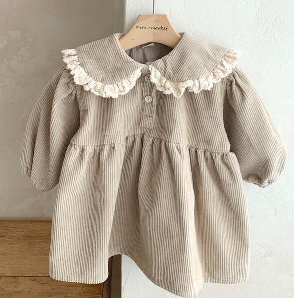 上品な丸襟とレース装飾が可愛いキッズ向けロングワンピースです。