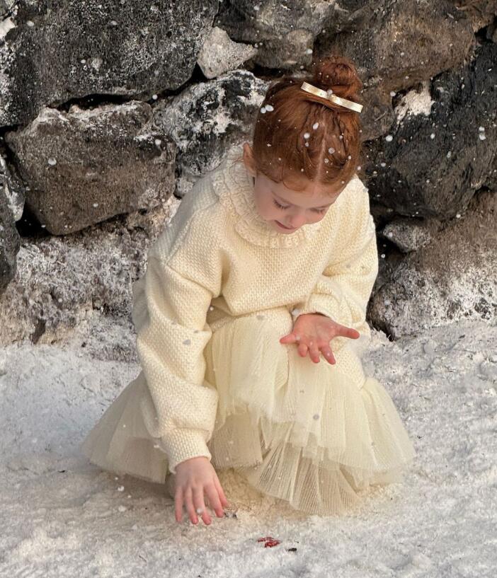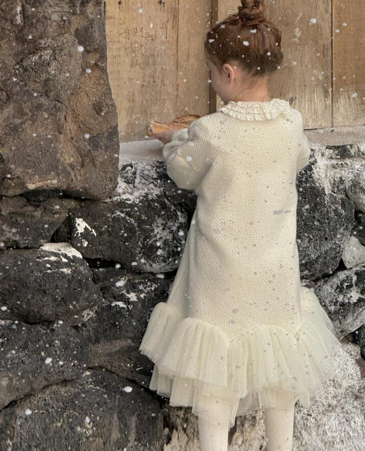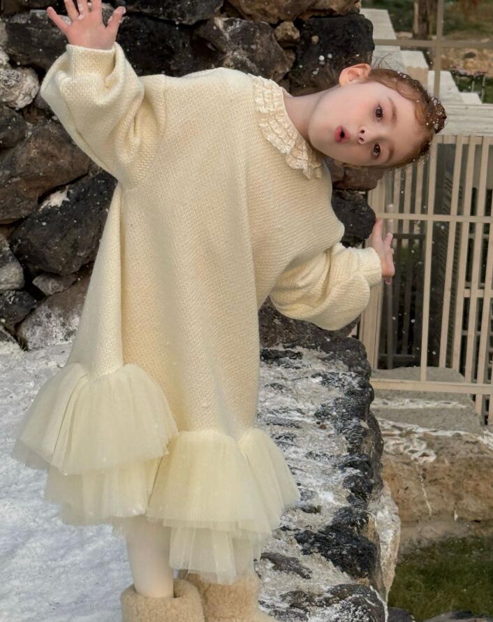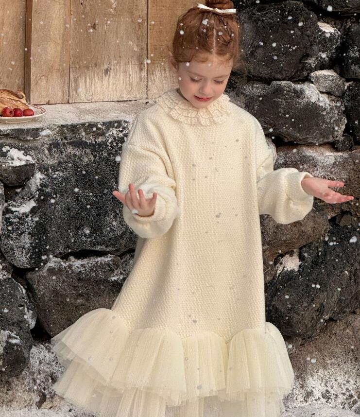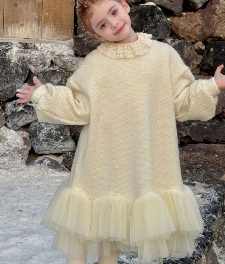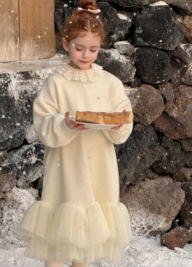 上品なレース襟が可愛らしいキッズ用ロングワンピースです。 柔らかなクリーム色の生地に、裾の重なったチュールが華やかさをプラス。 90から130センチまで豊富なサイズ展開で、特別な日のお出かけや発表会にぴったり。 キッズの成長に合わせて長くご愛用いただけます。