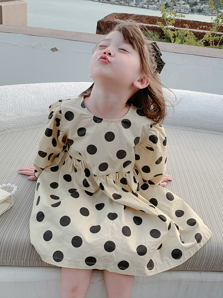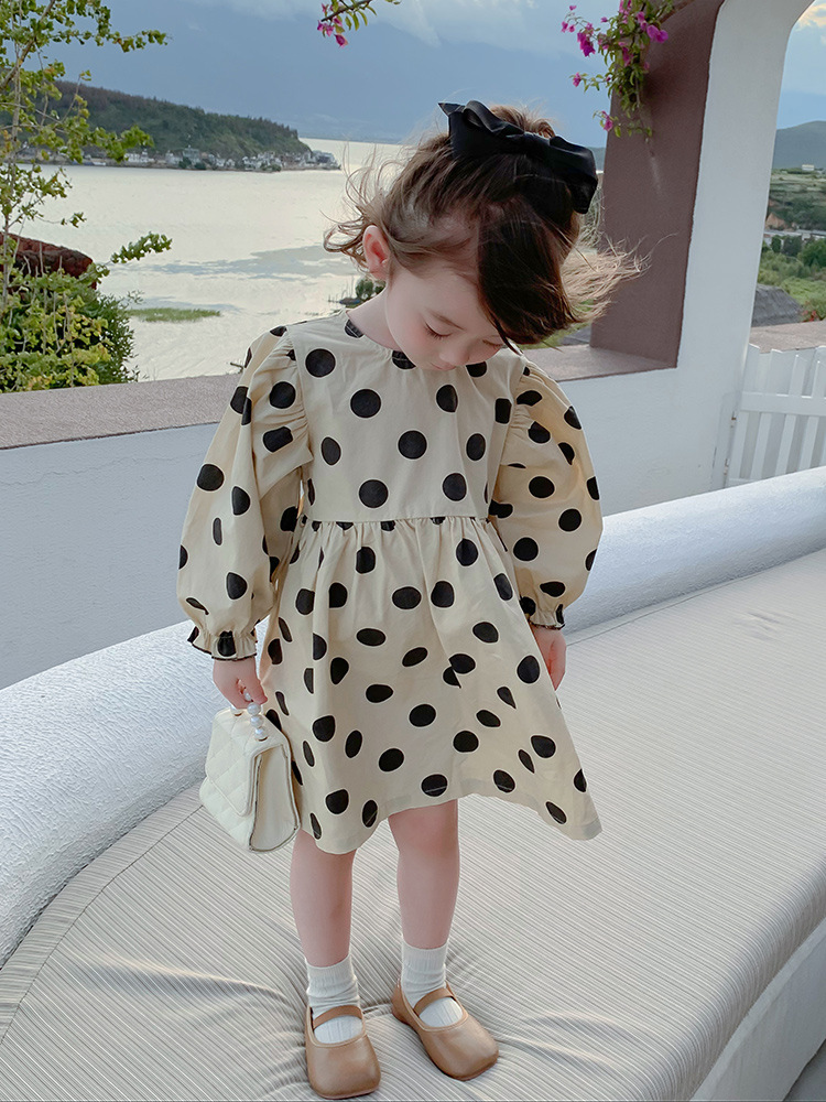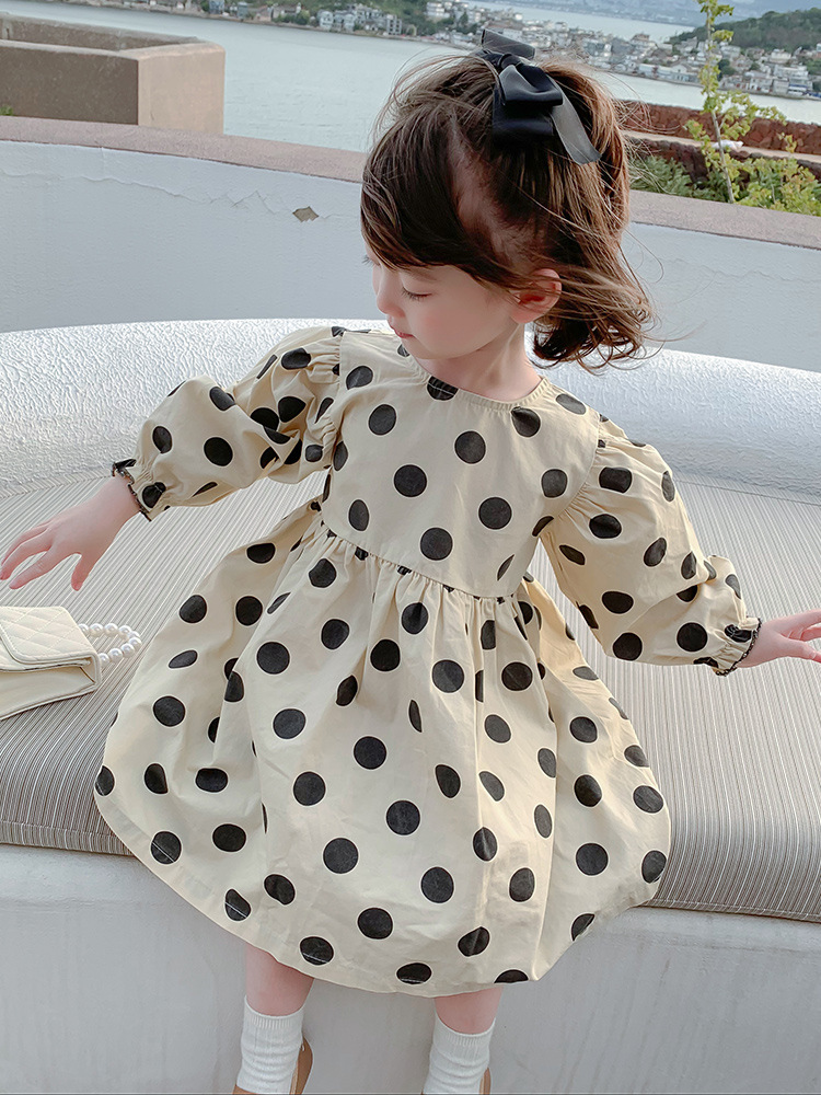水玉模様と長袖フリル袖がポイントの上品なデザインです。