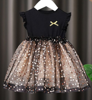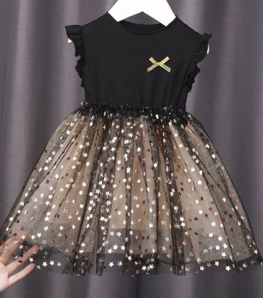 キラキラ星柄が美しいキッズ用ロングワンピースです。