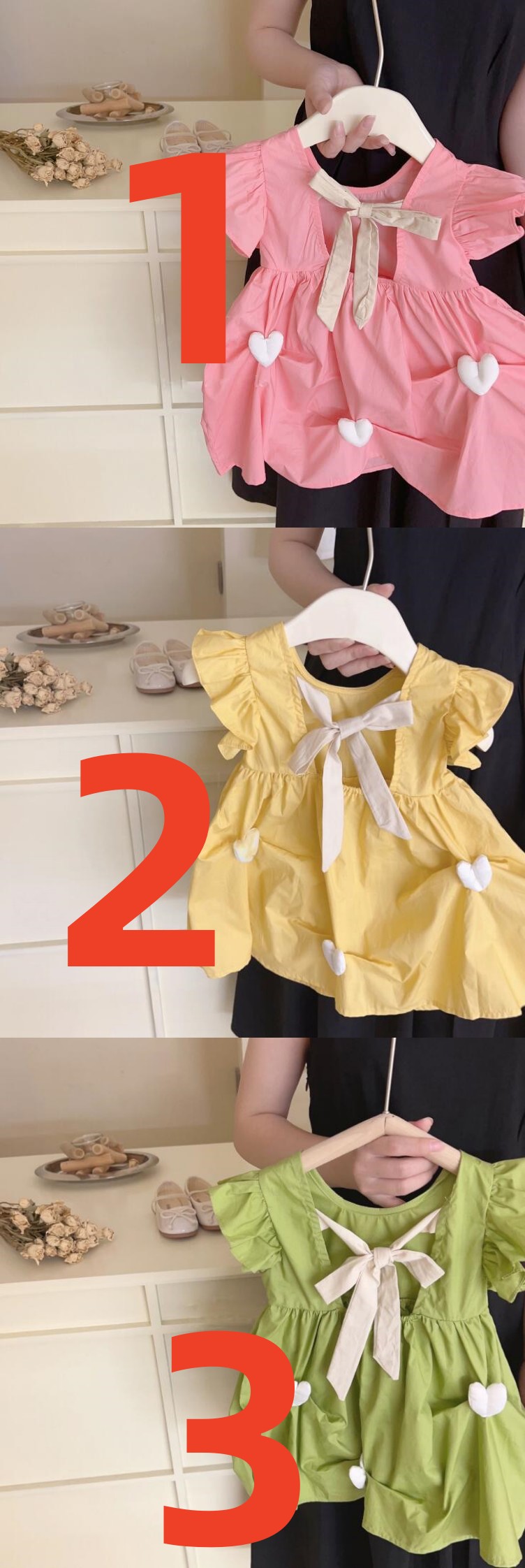 ピンク、イエロー、グリーンの3色展開で、お出かけにも普段着にも最適。