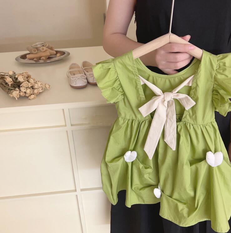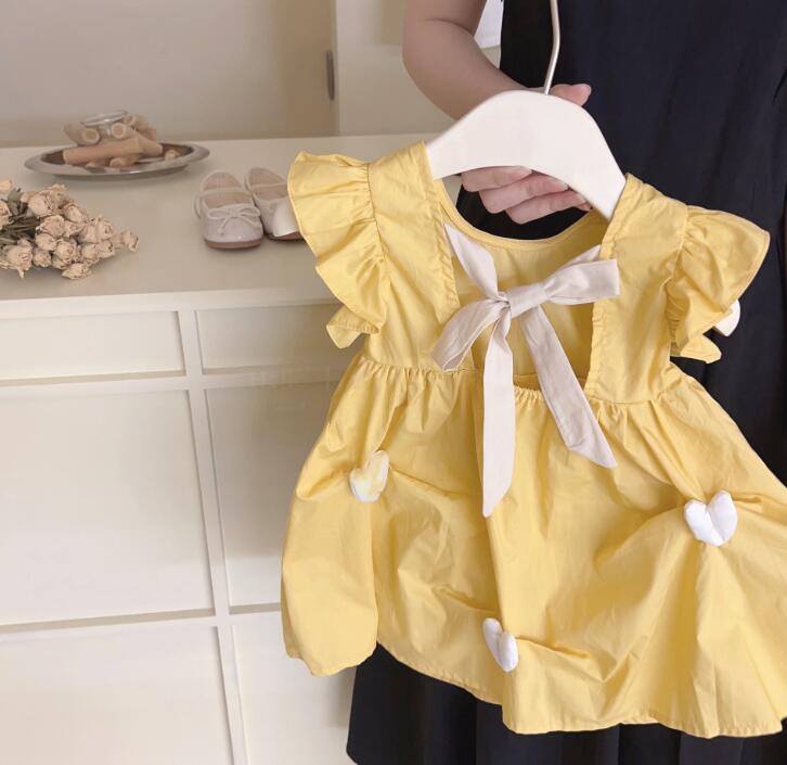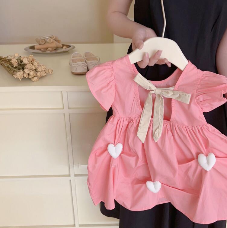 可愛いハート柄が特徴的なキッズ向け韓国風ロングワンピースです。