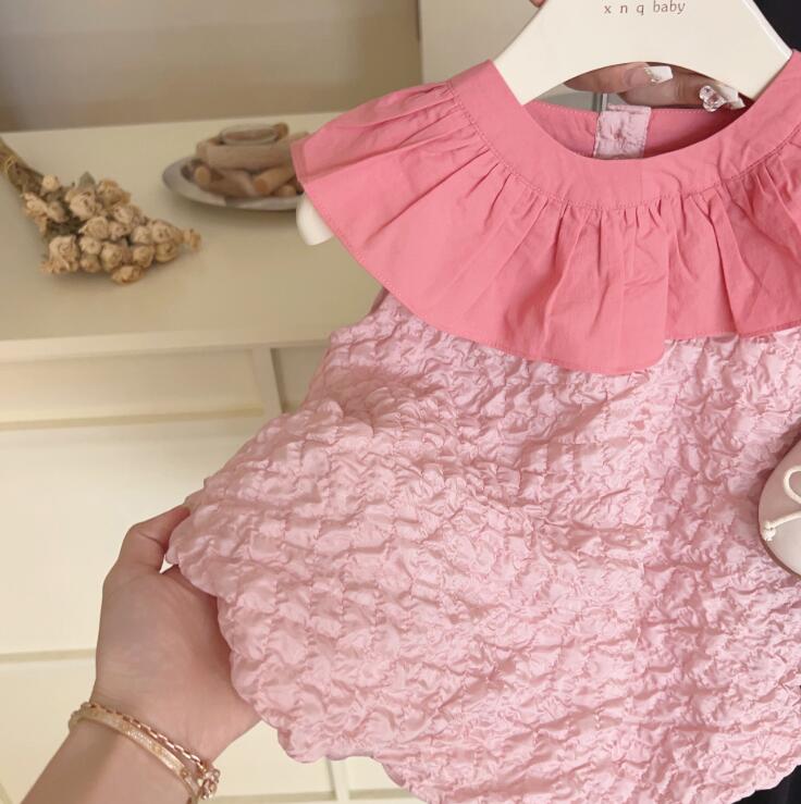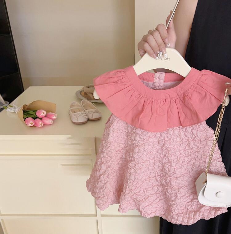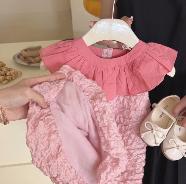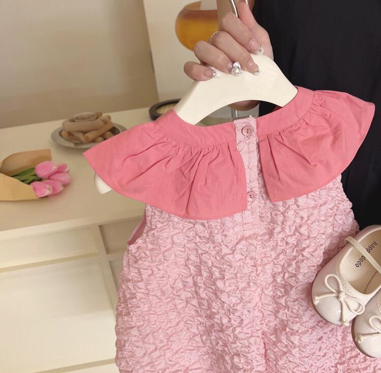 可愛い襟のフリルが印象的なキッズ向けロングワンピースです。