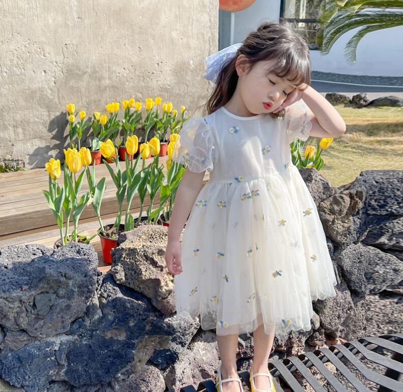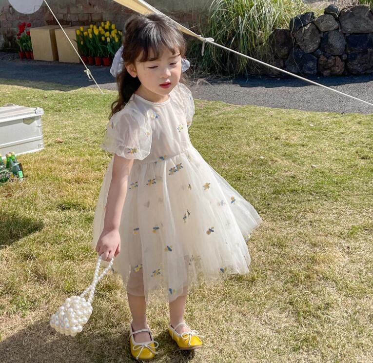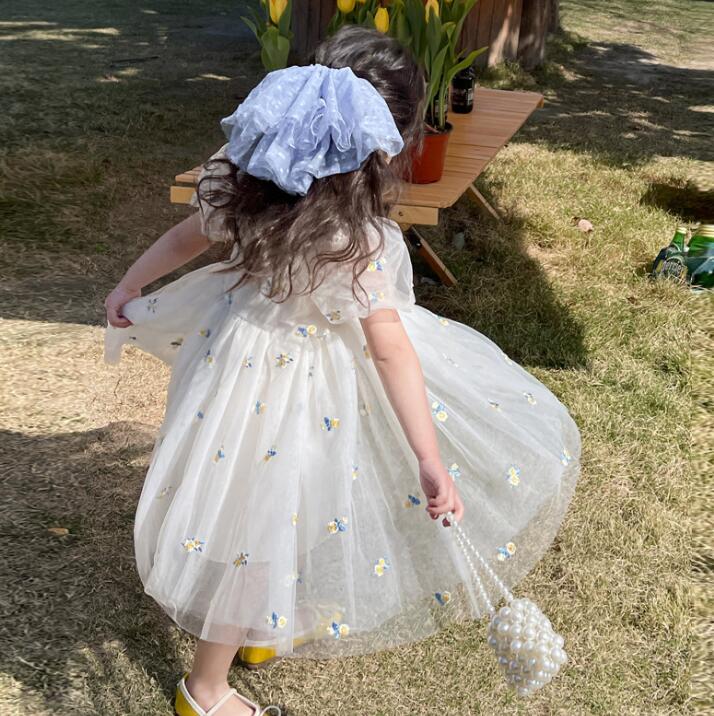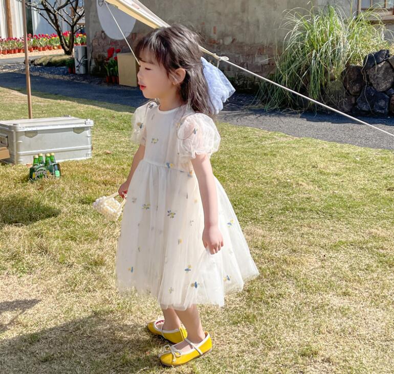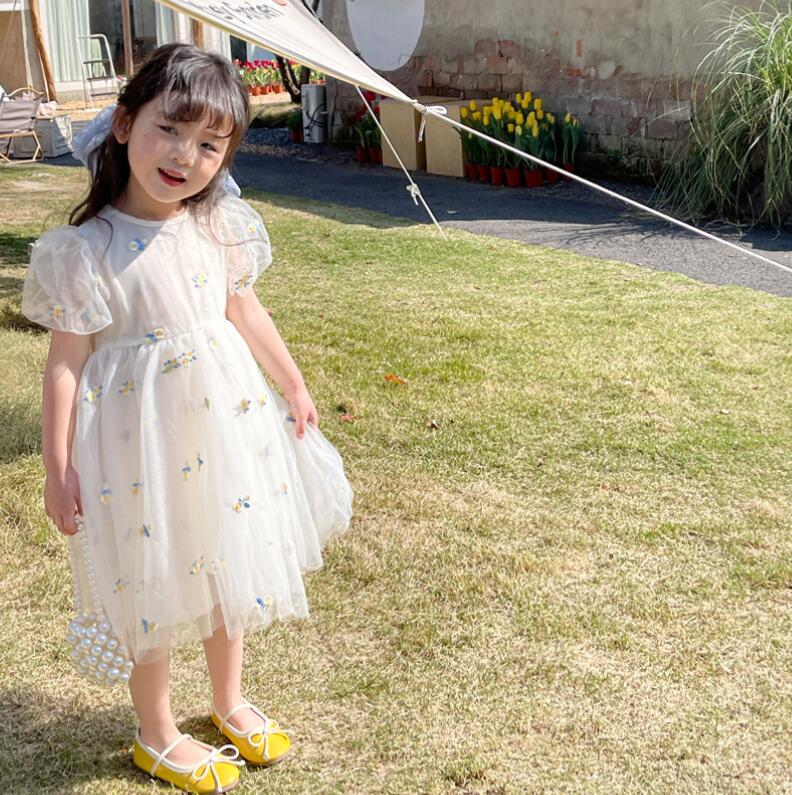 可愛い花柄刺繍が施されたキッズ用ロングワンピースです。