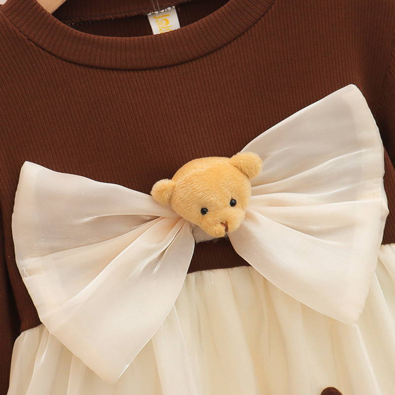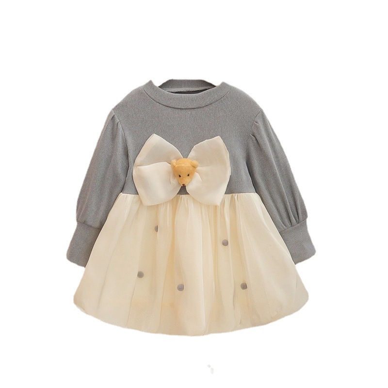 可愛いくま付きりぼんがポイントのキッズ用ロングワンピース。