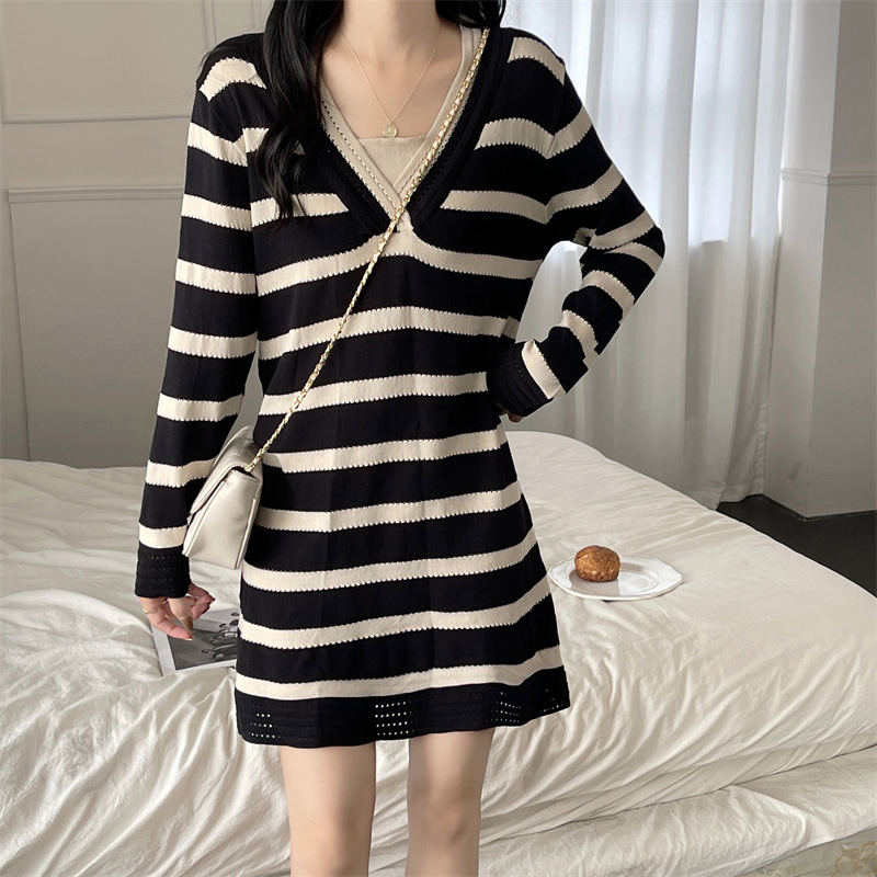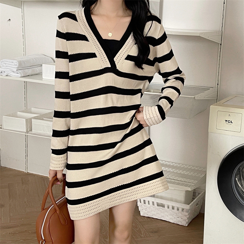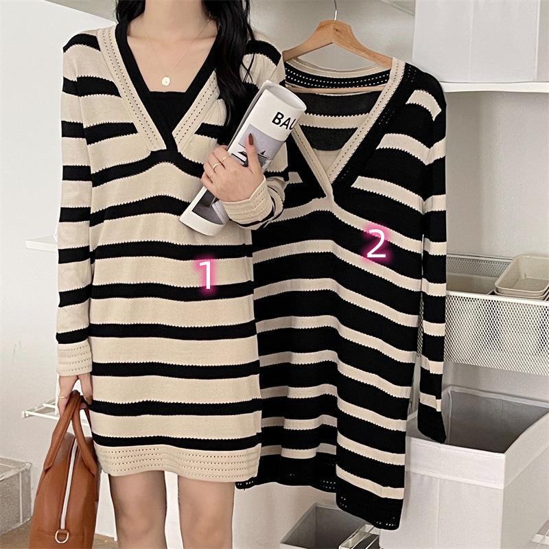 トレンドのボーダー柄が魅力的なニットミニワンピースです。