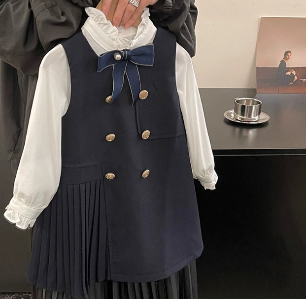 胸元のリボンと金色ボタンがアクセントの可愛いデザイン。