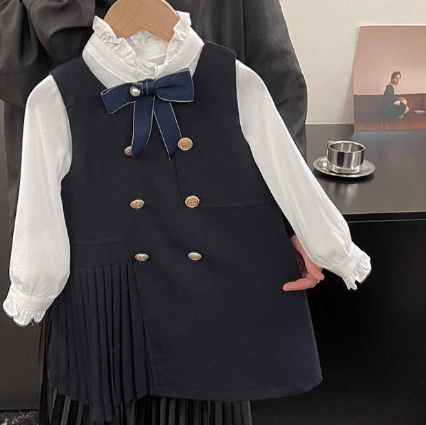 上品なネイビーカラーのキッズ用ジャンパースカートです。