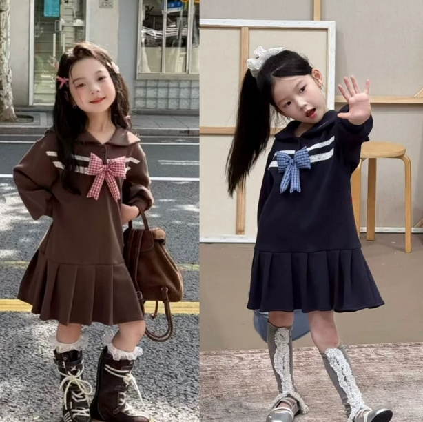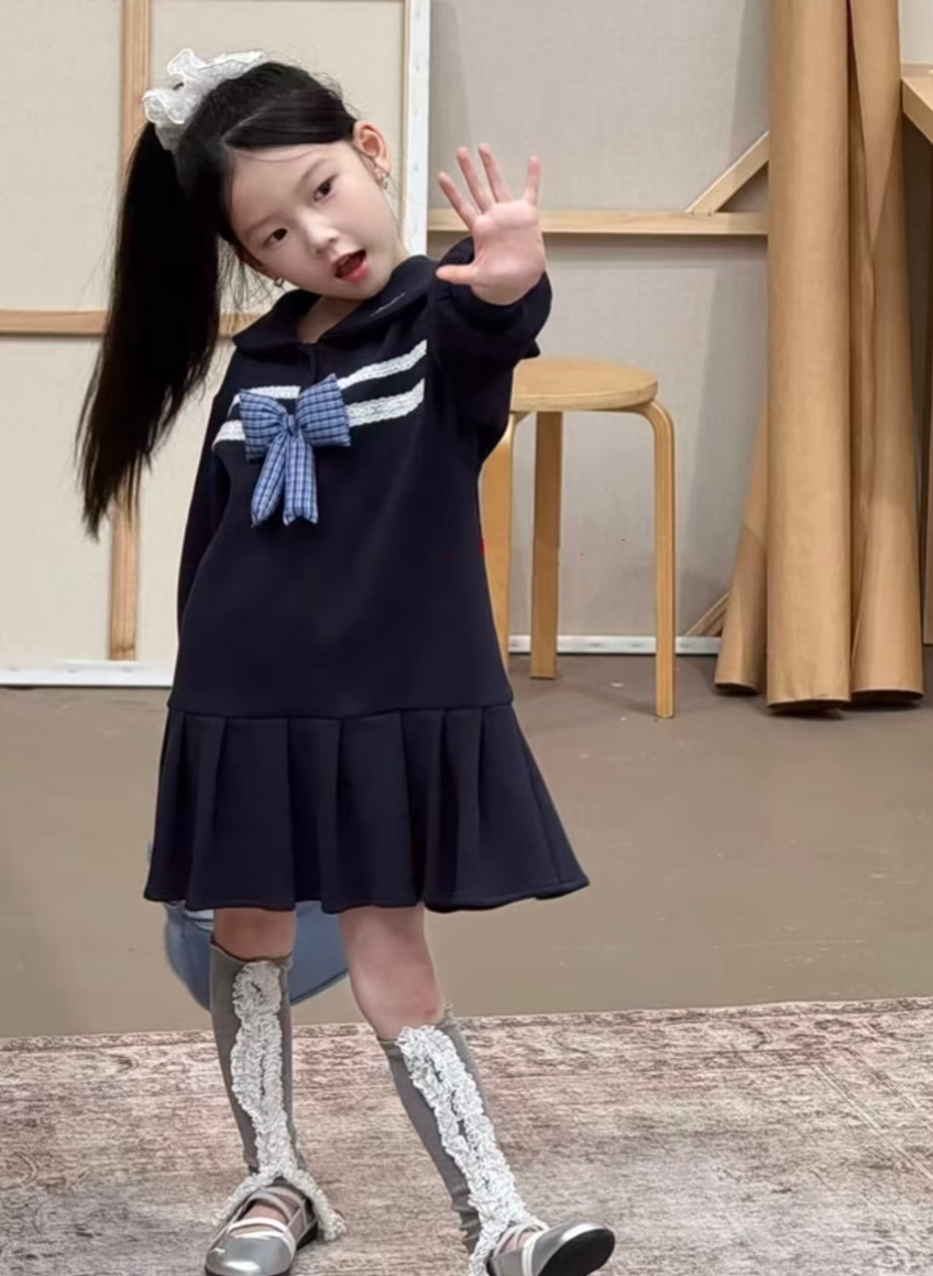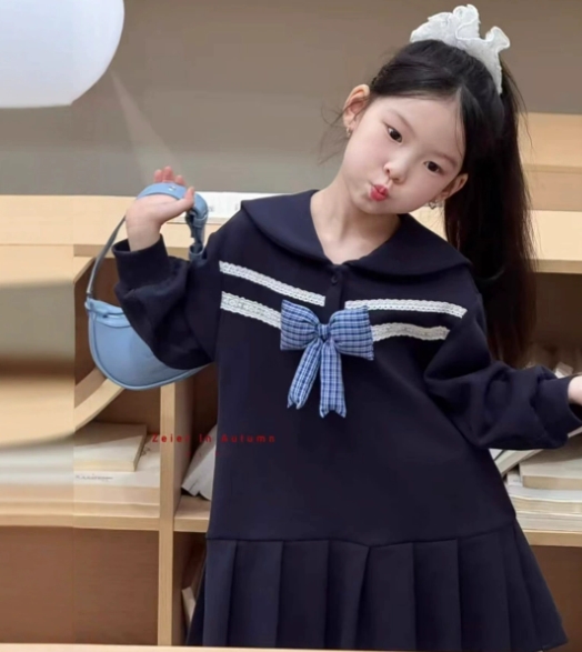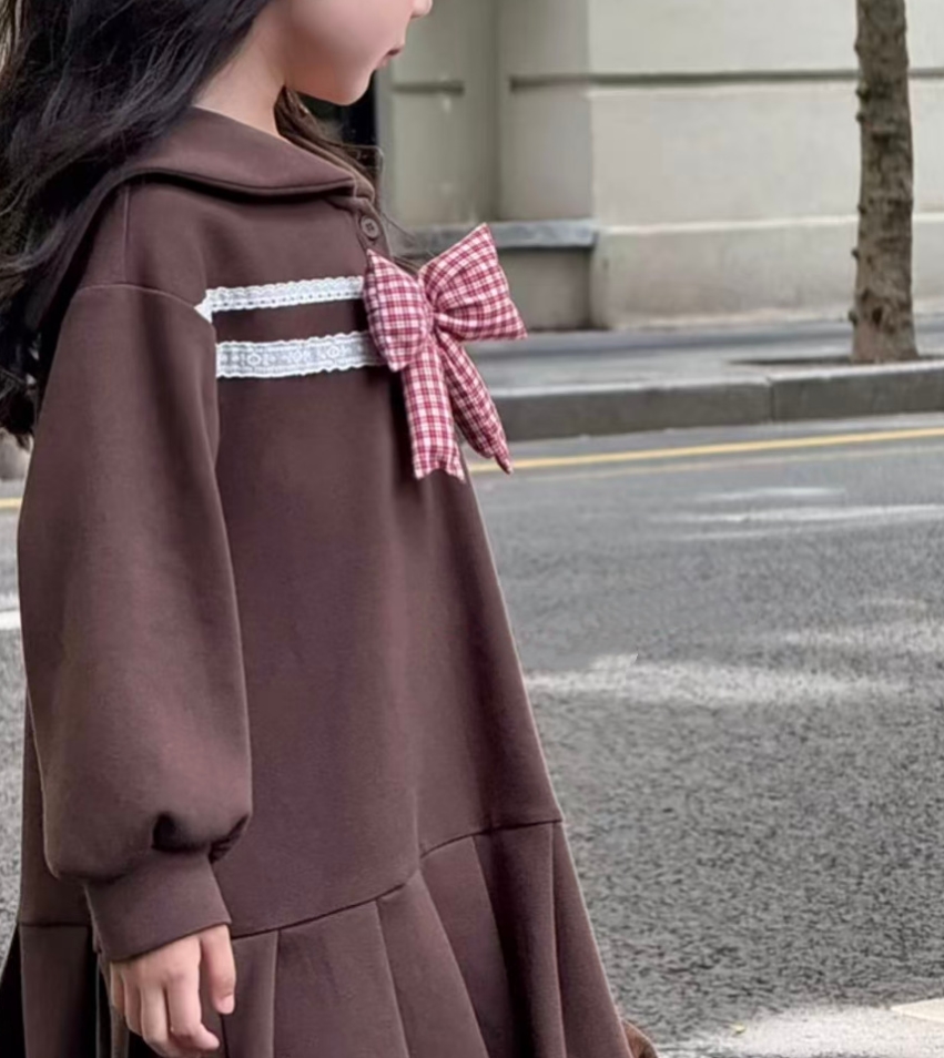 可愛いセーラー襟とリボンが特徴的なキッズ用ロングワンピースです。