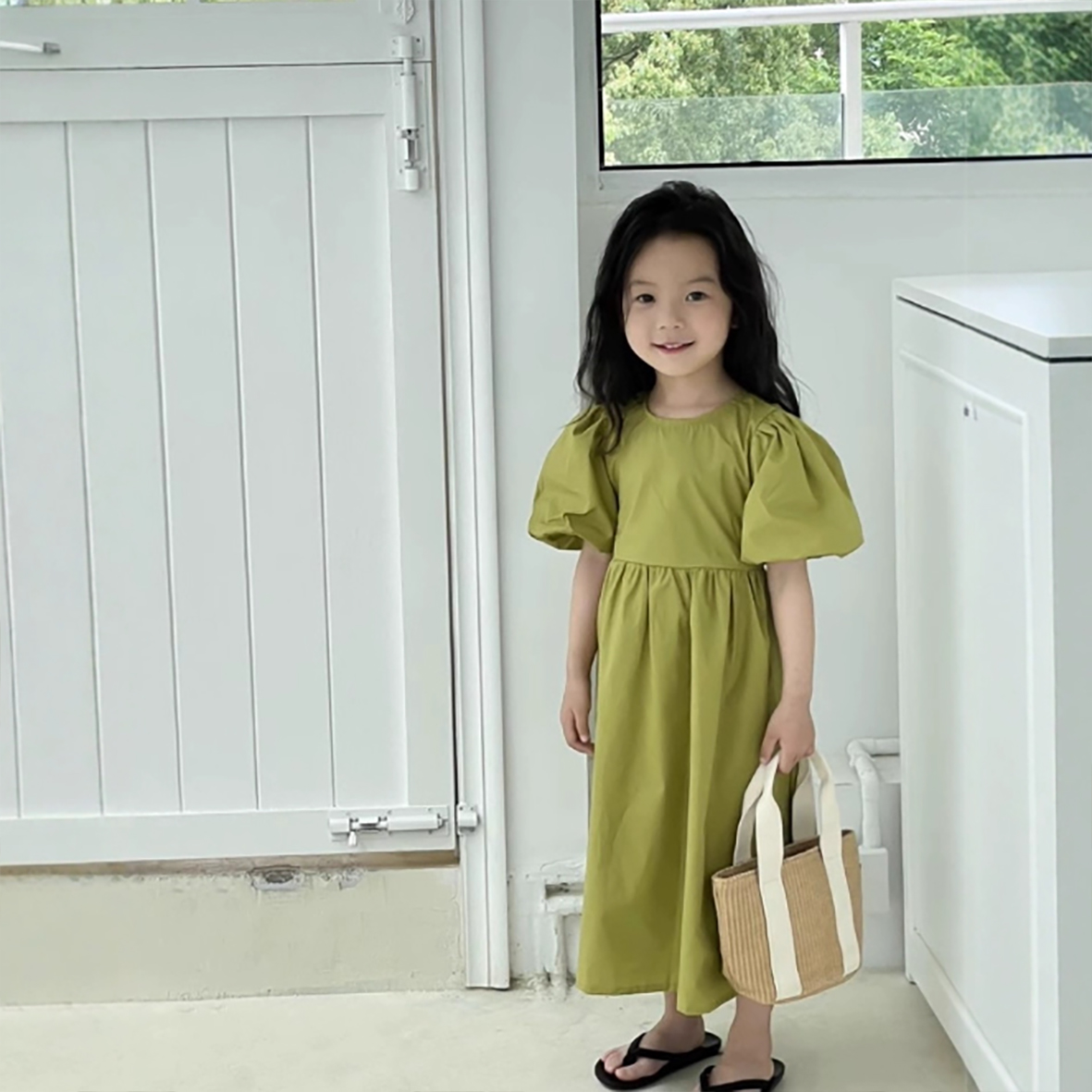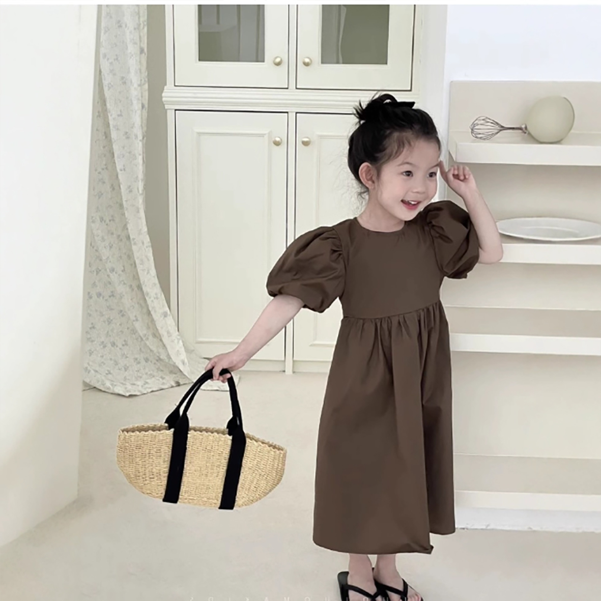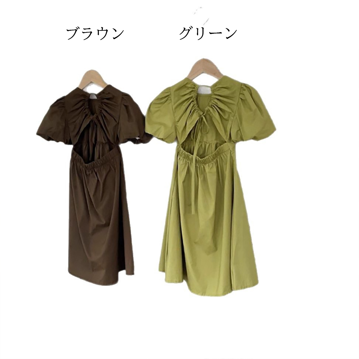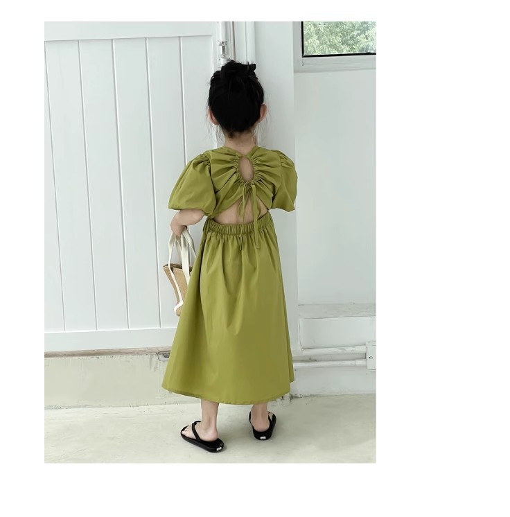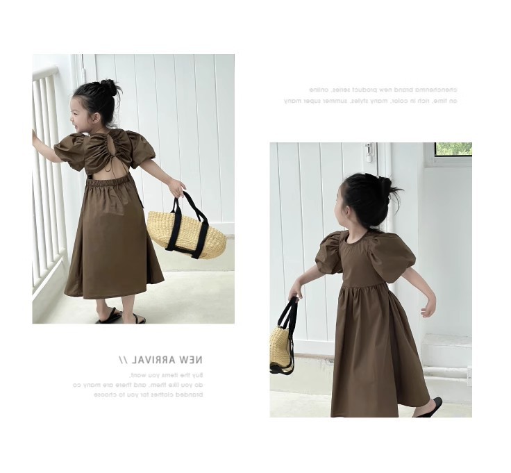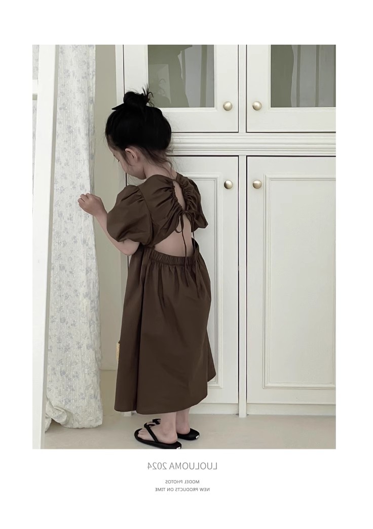 韓国風のおしゃれな背中開きデザインで、女の子らしい可愛らしさを演出します。