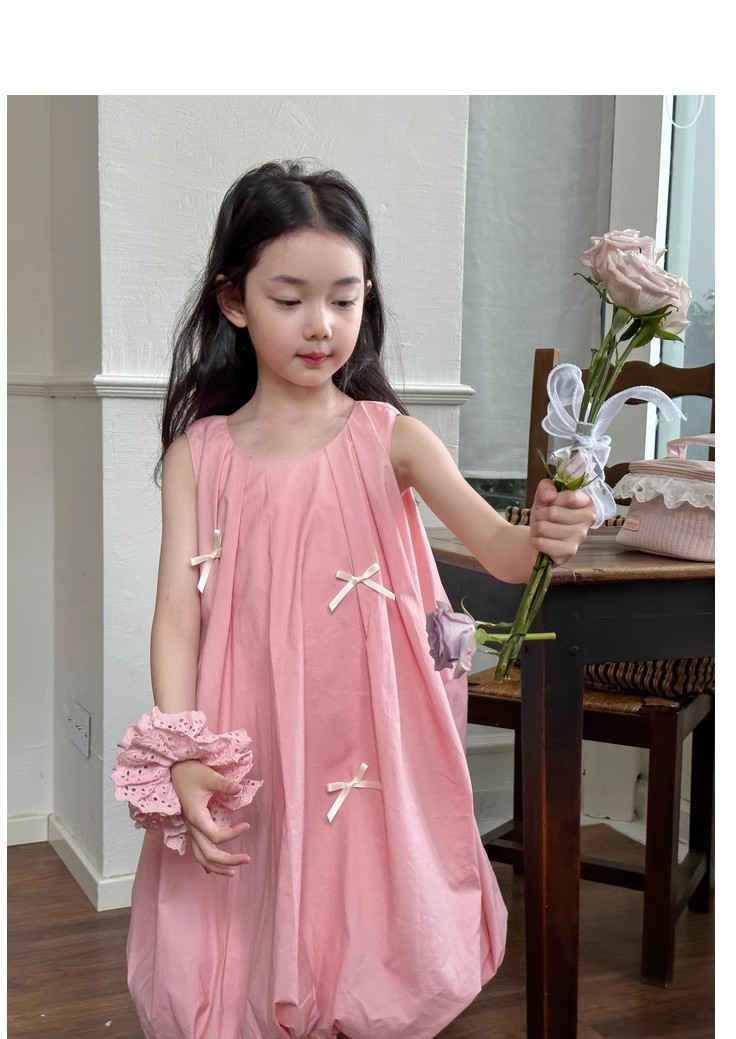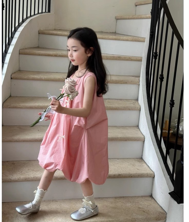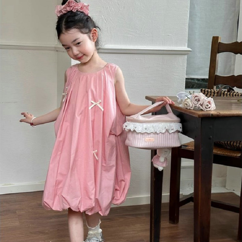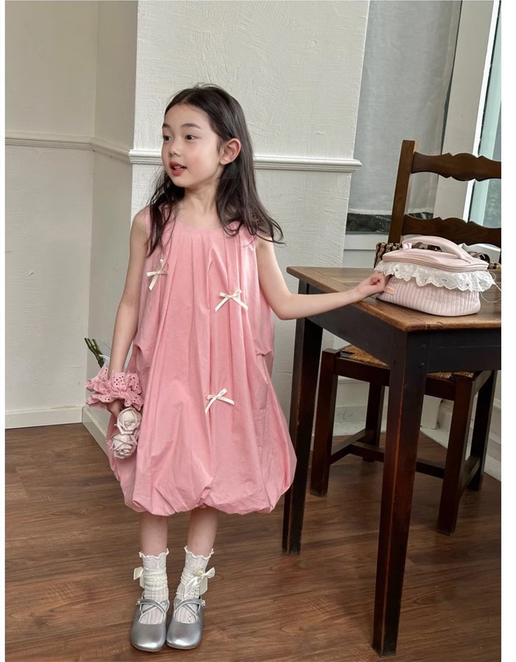 キッズ向けの可愛いピンクロングワンピースです。