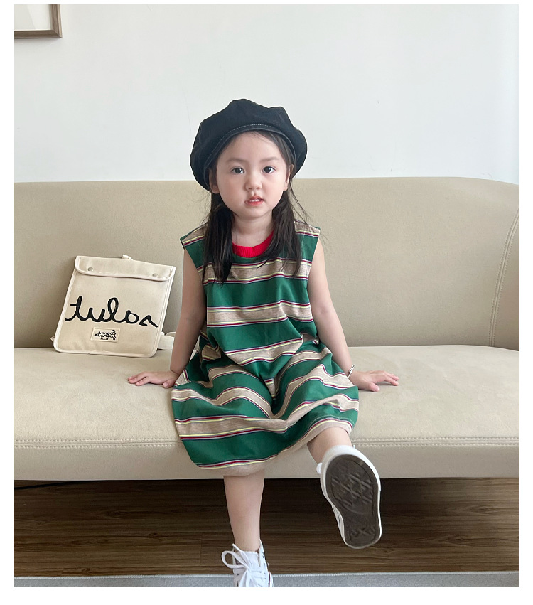 ■コメント ・レトロ感漂う太ボーダー柄ワンピース。 ・シーズンムード漂う夏にピッタリなノースリーブ。 ・首元の赤いラインがワンポイント。 ・柔らかな素材で優しく快適な着心地。 ・1枚ではもちろん、レイヤードコーデも可愛く着用できます。 ■サイズ(単位:約cm) 80 総丈60 バスト74 適応身長95-100cm(OK) 90 総丈64 バスト76 適応身長100-105cm 100 総丈67 バスト80 適応身長105-115cm 110 総丈70 バスト74 適応身長115-120cm 120 総丈74 バスト76 適応身長120-130cm ※平置き採寸の為2,3cmの誤差が生じる場合がございますので、予めご了承ください。 ■カラー 綿80%ポリエステル20% ■伸縮性 なし ■裏地 なし ■生地の厚さ 普通 ■透け感 なし