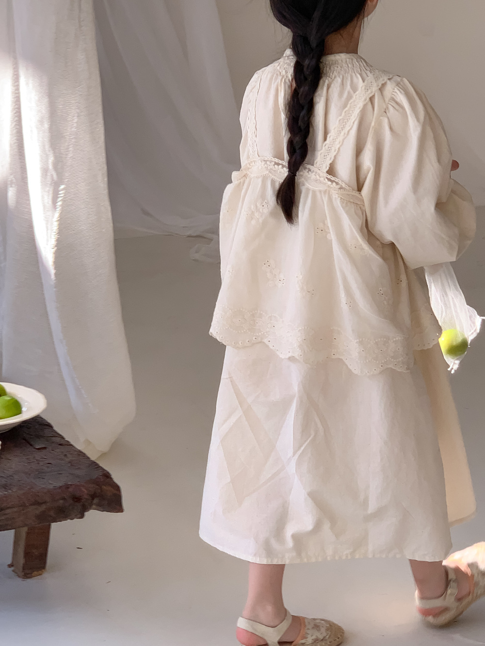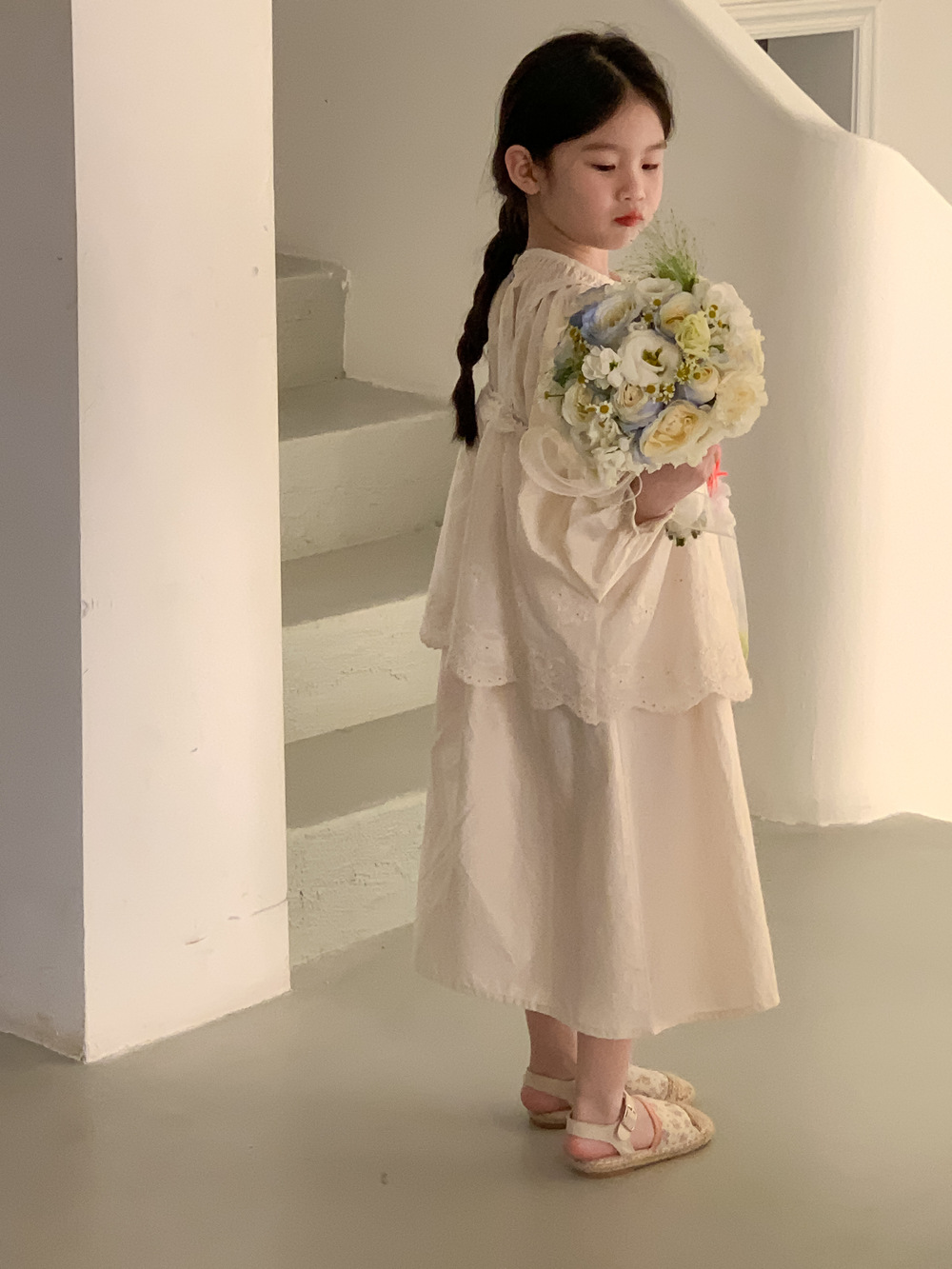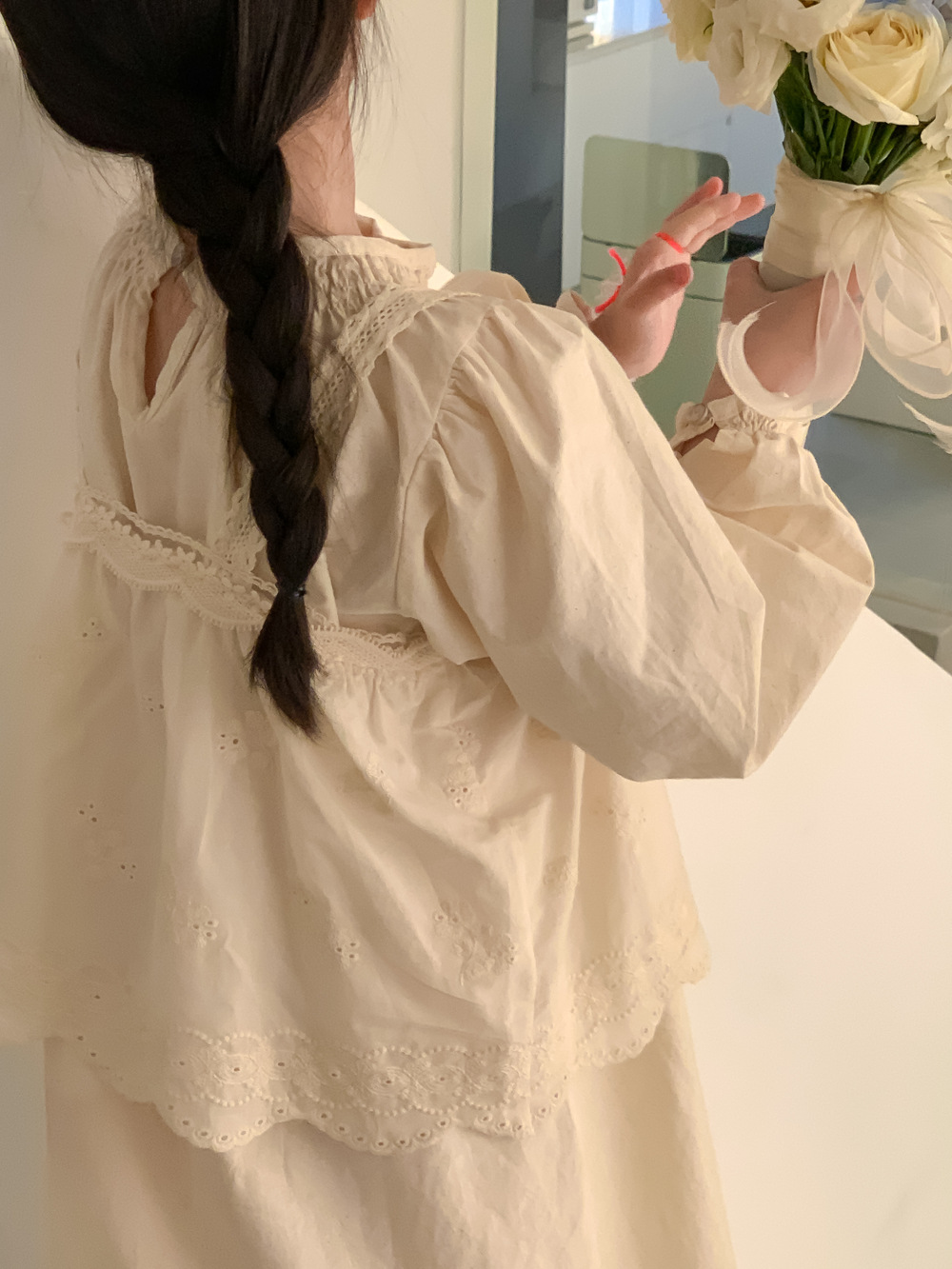 繊細なレース刺繍とふんわり袖が可愛らしく、特別な日にもぴったり。