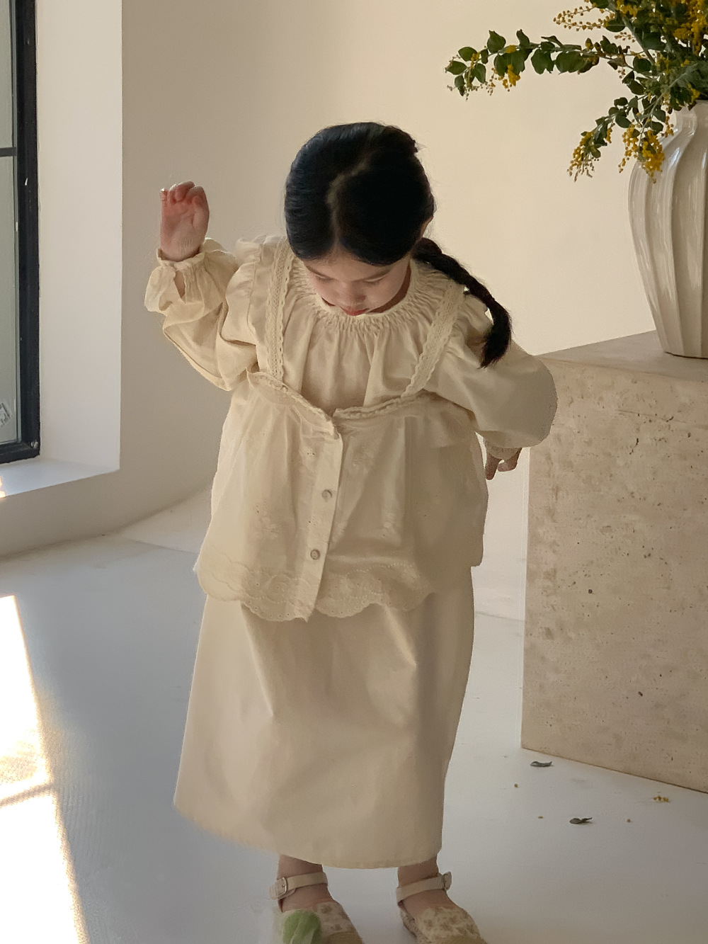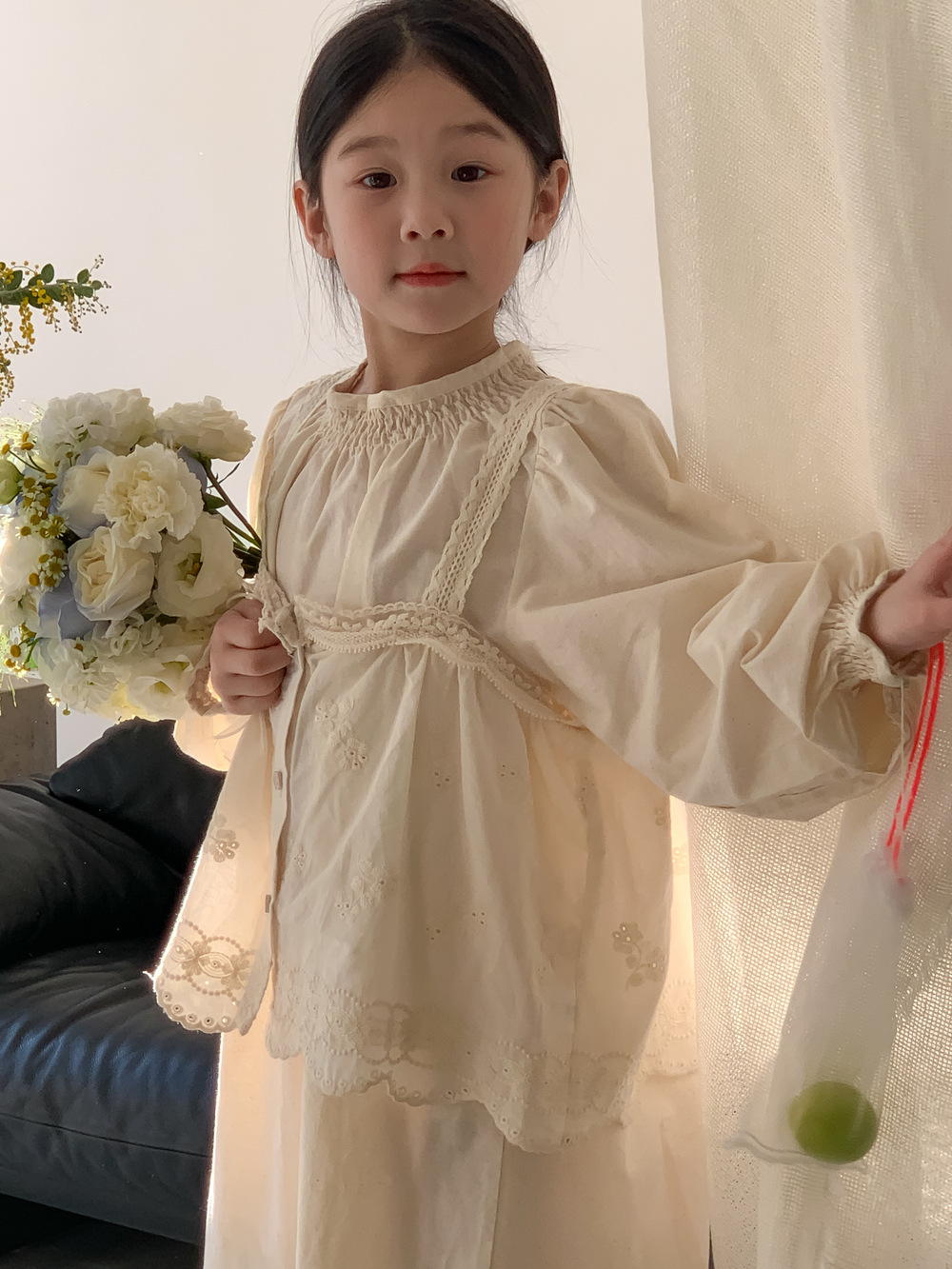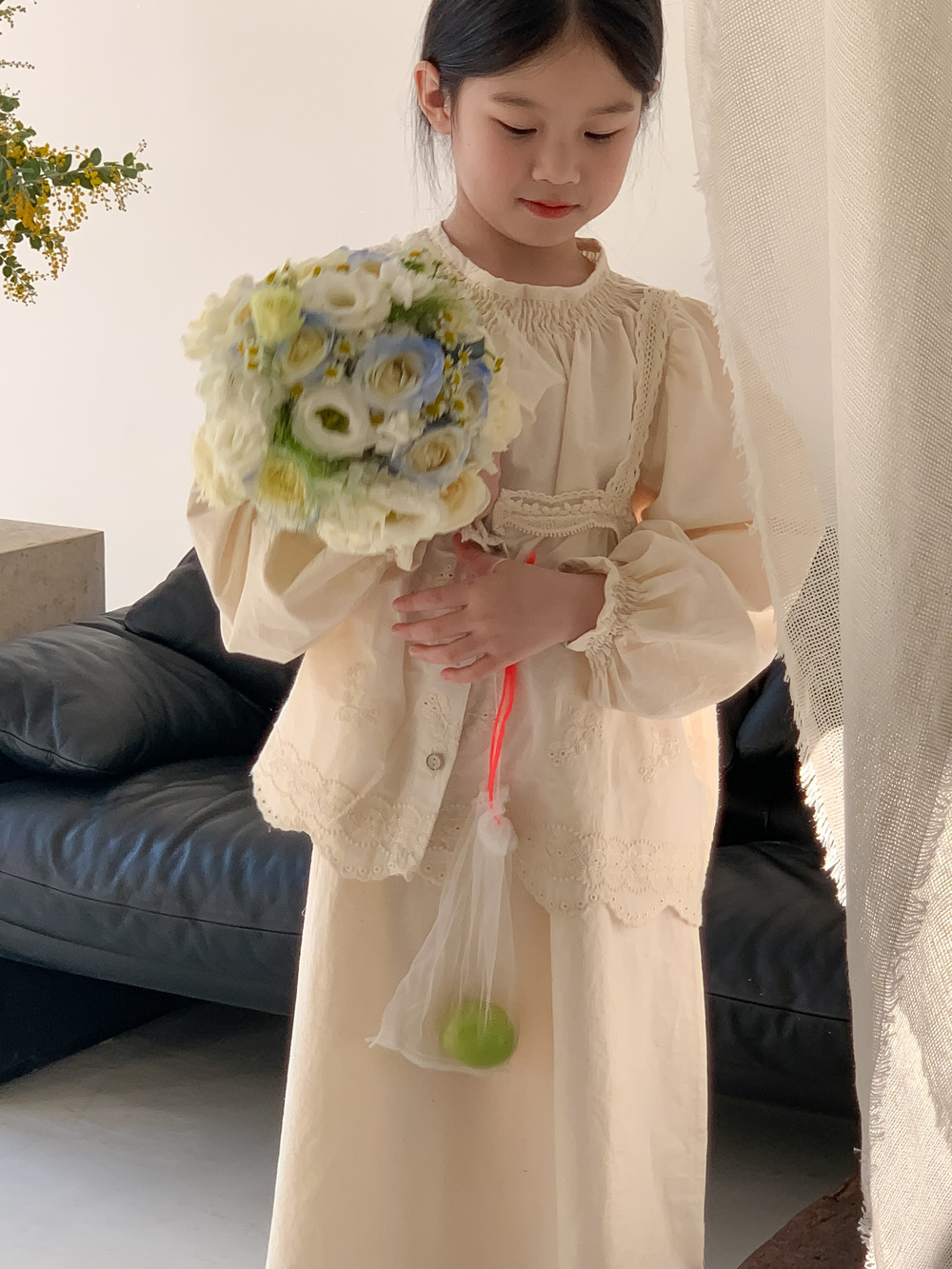 繊細なレース刺繍とふんわり袖が可愛らしく、特別な日にもぴったり。