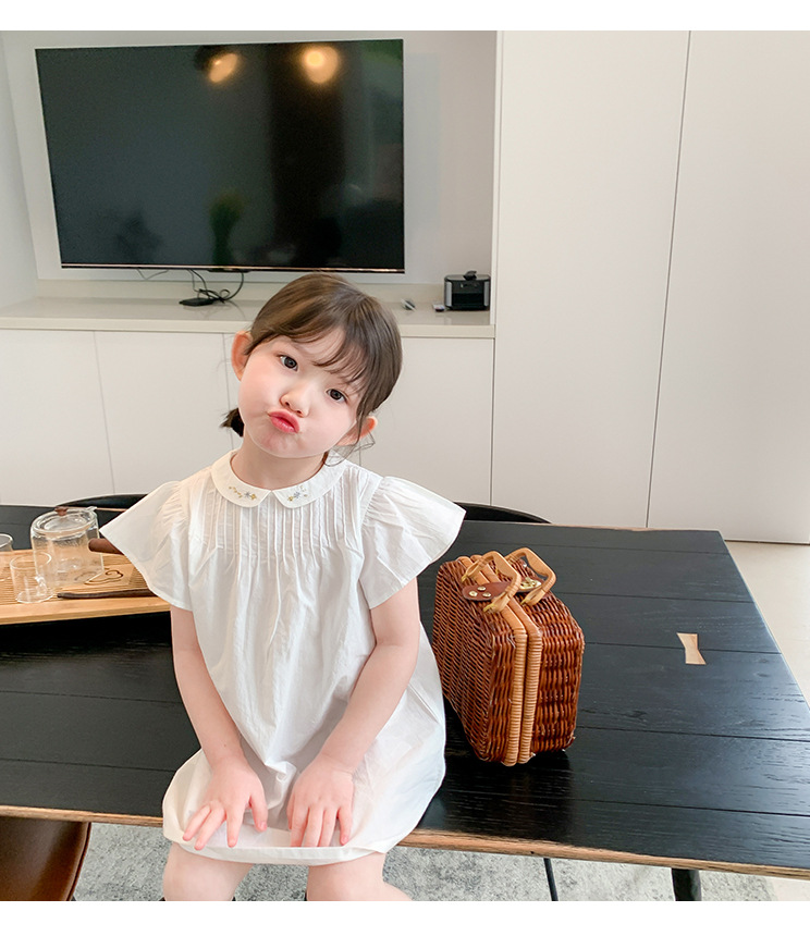 上品な刺繍襟が可愛いキッズ向けロングワンピースです。