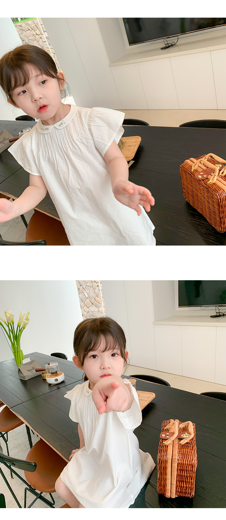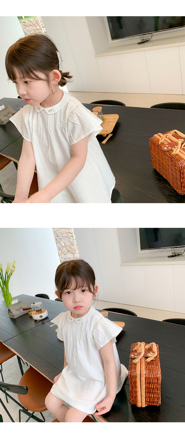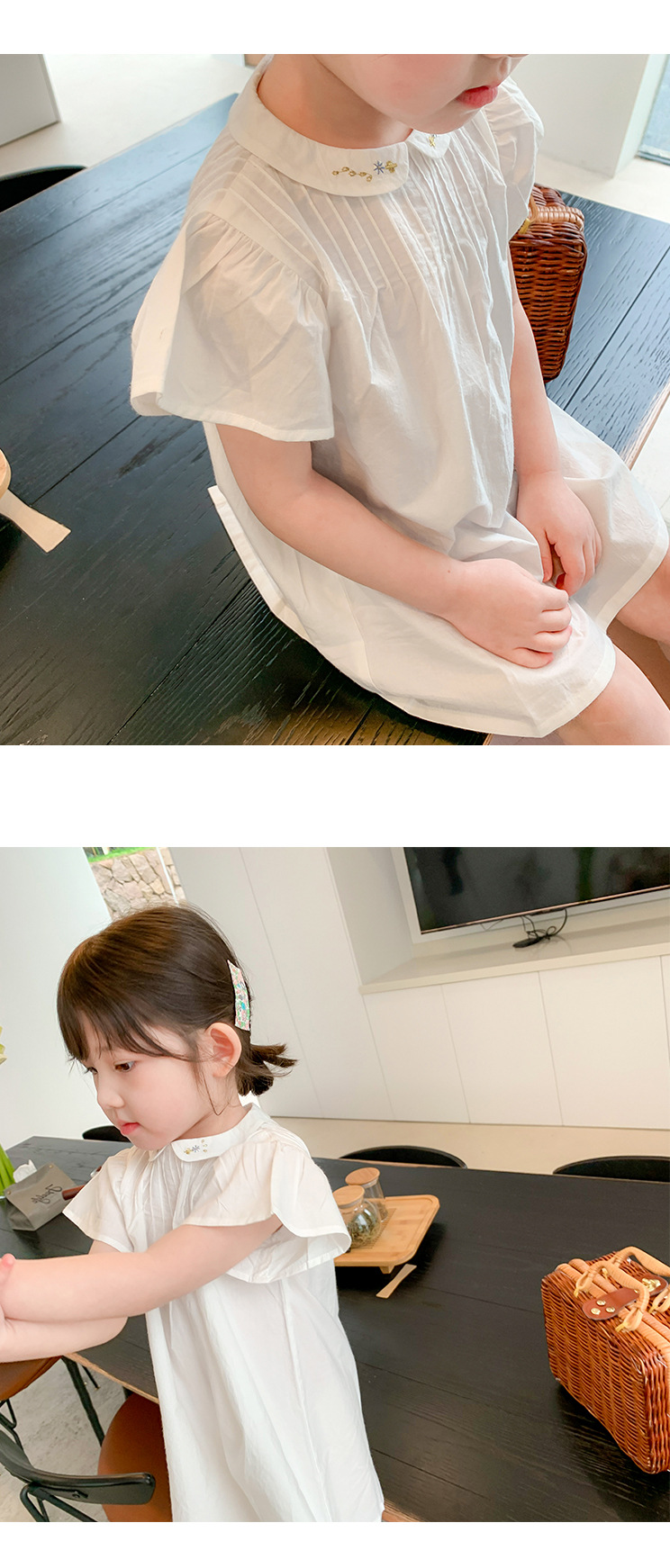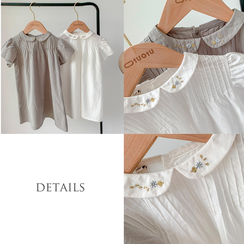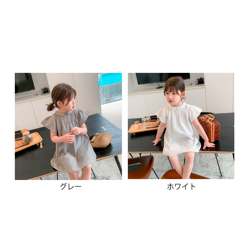 ■コメント ・刺繍が上品な襟つきワンピース。 ・落ち着きのある清楚な雰囲気。 ・レギンスやタイツ、ショートパンツなどとも相性が良いです。 ・動くたびにスカートがふわっと広がります。 ■サイズ(単位:約cm) 80cm 着丈約50 90cm 着丈約53 100cm 着丈約57 110cm 着丈約61 120cm 着丈約65 ■カラー 画像に記載 ■伸縮性 なし ■裏地 なし ■生地の厚さ 普通 ■透け感 なし ■素材 ポリエステル100%