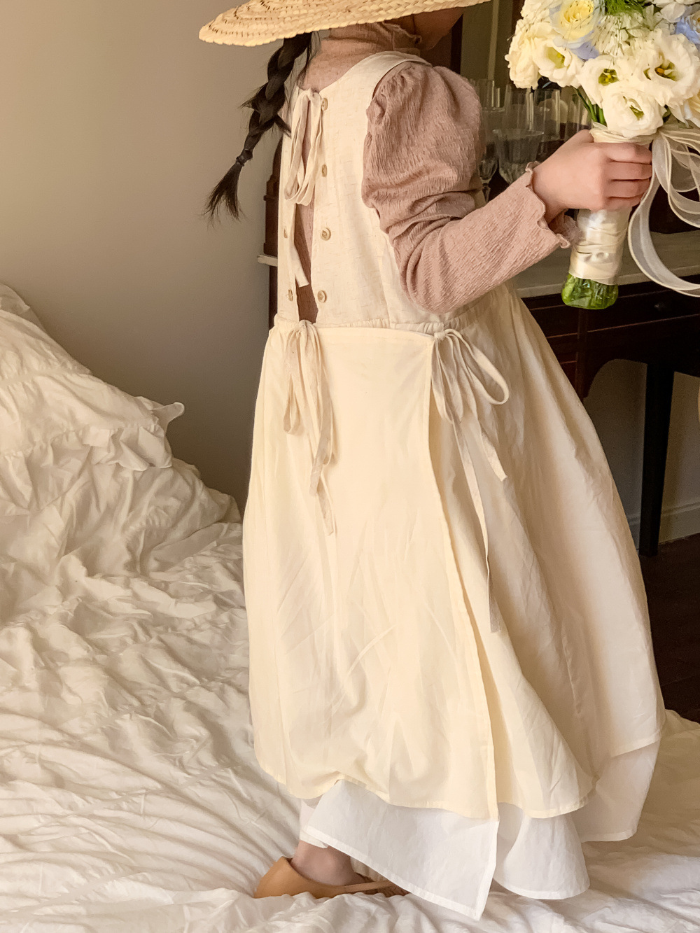 ■コメント ・ナチュラルで落着きのあるワンピースセットアップ ・動く度にふんわり揺れ、サイドからインナーワンピがチラッと見えてお洒落です。 ・フリルハイネックと袖口がエレガントさをプラス。 ・肩のパフデザインが女の子らしさをプラス。 ■サイズ(単位:約cm) 画像に記載 ■カラー 画像の色 ■素材 綿90%ポリエステル10% ■伸縮性 なし ■裏地 なし ■生地の厚さ 普通 ■透け感 なし