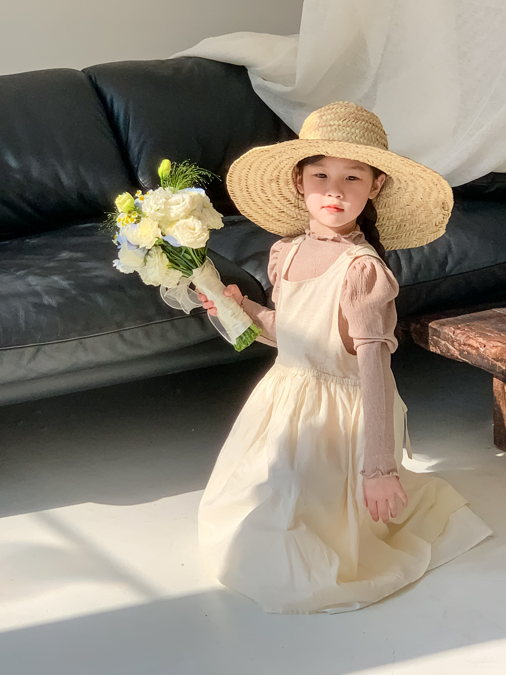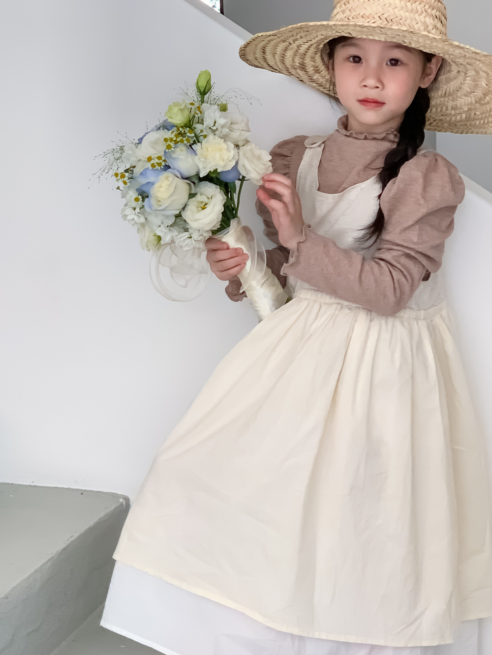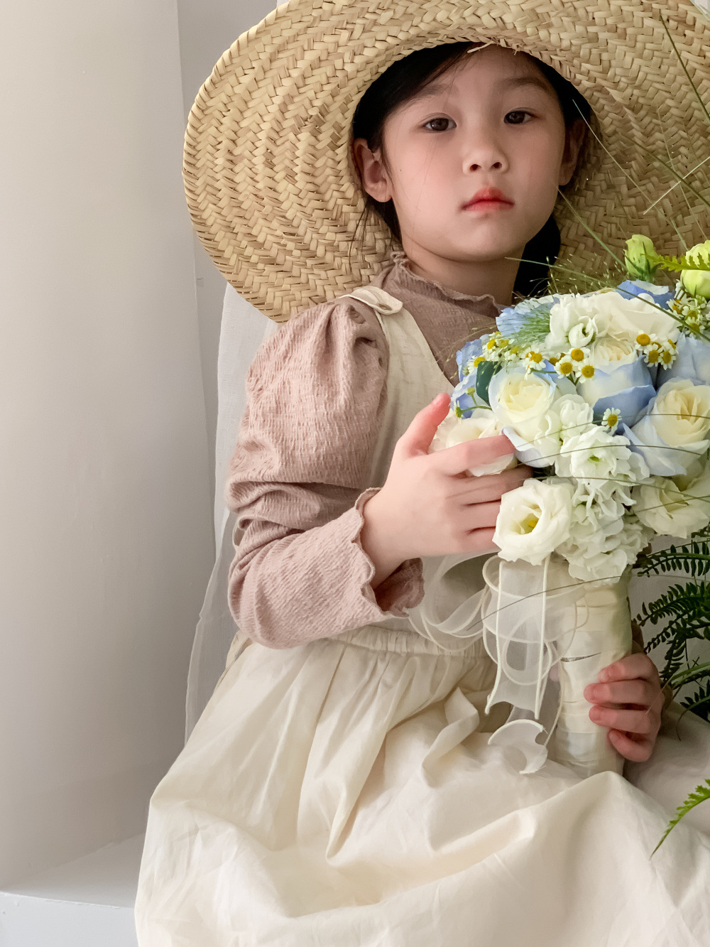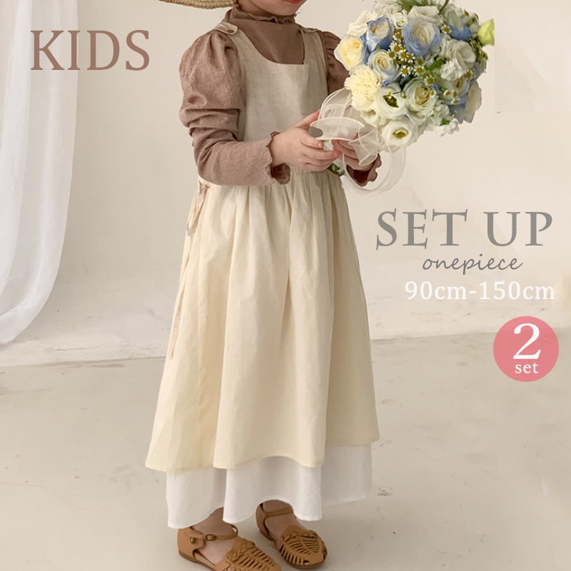 可愛いキッズ向けの韓国風重ね着風セットアップです。