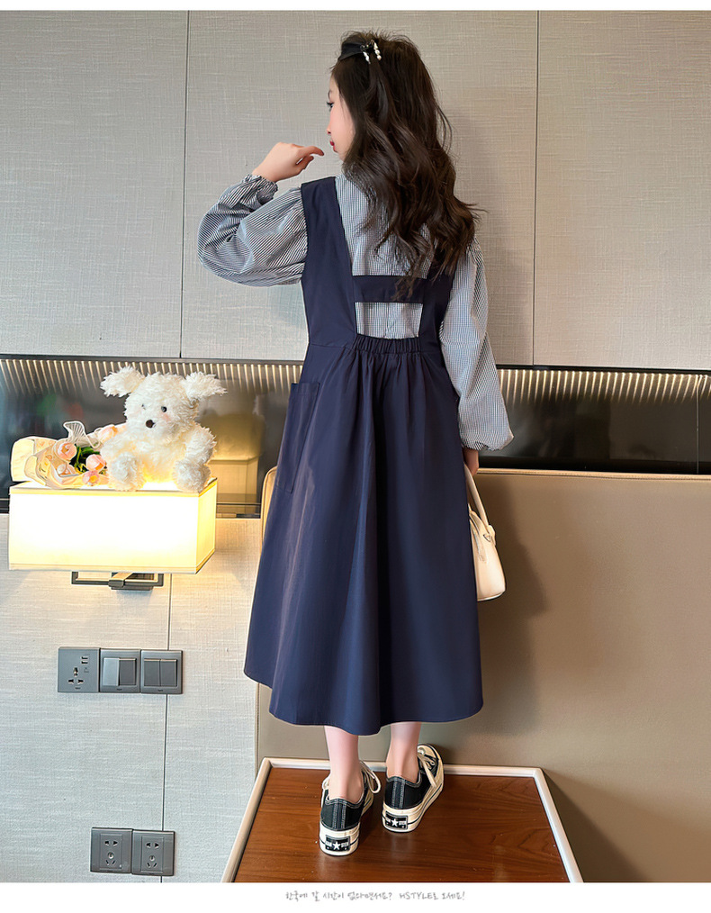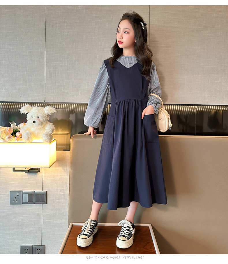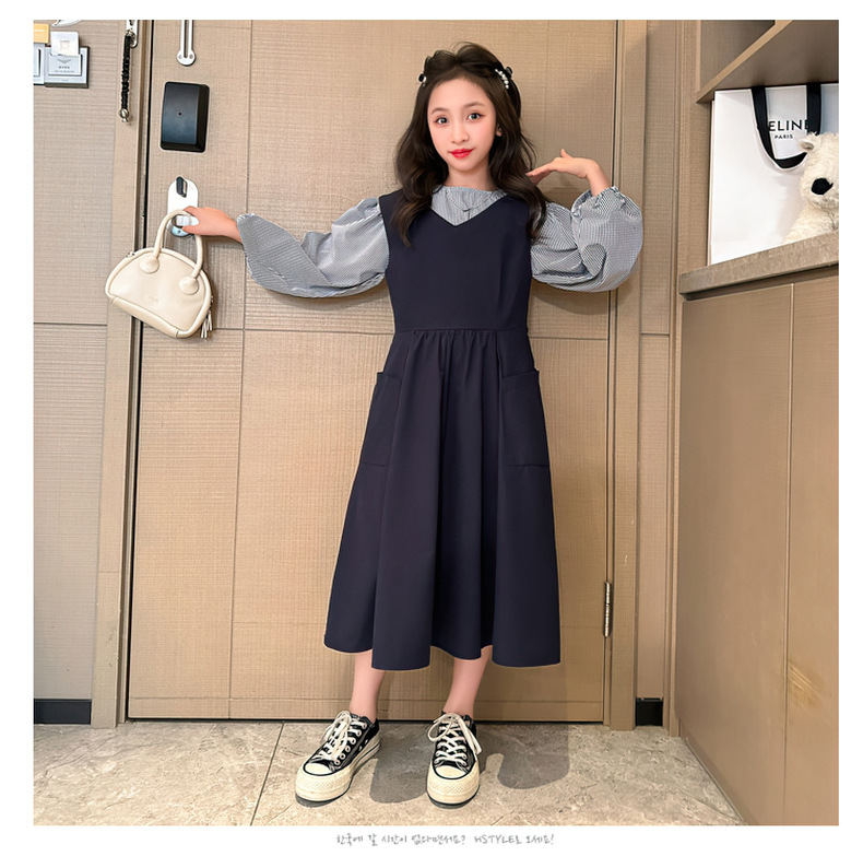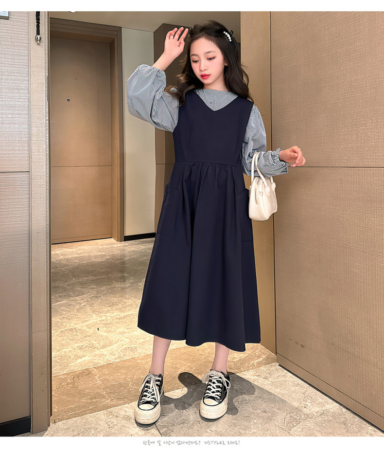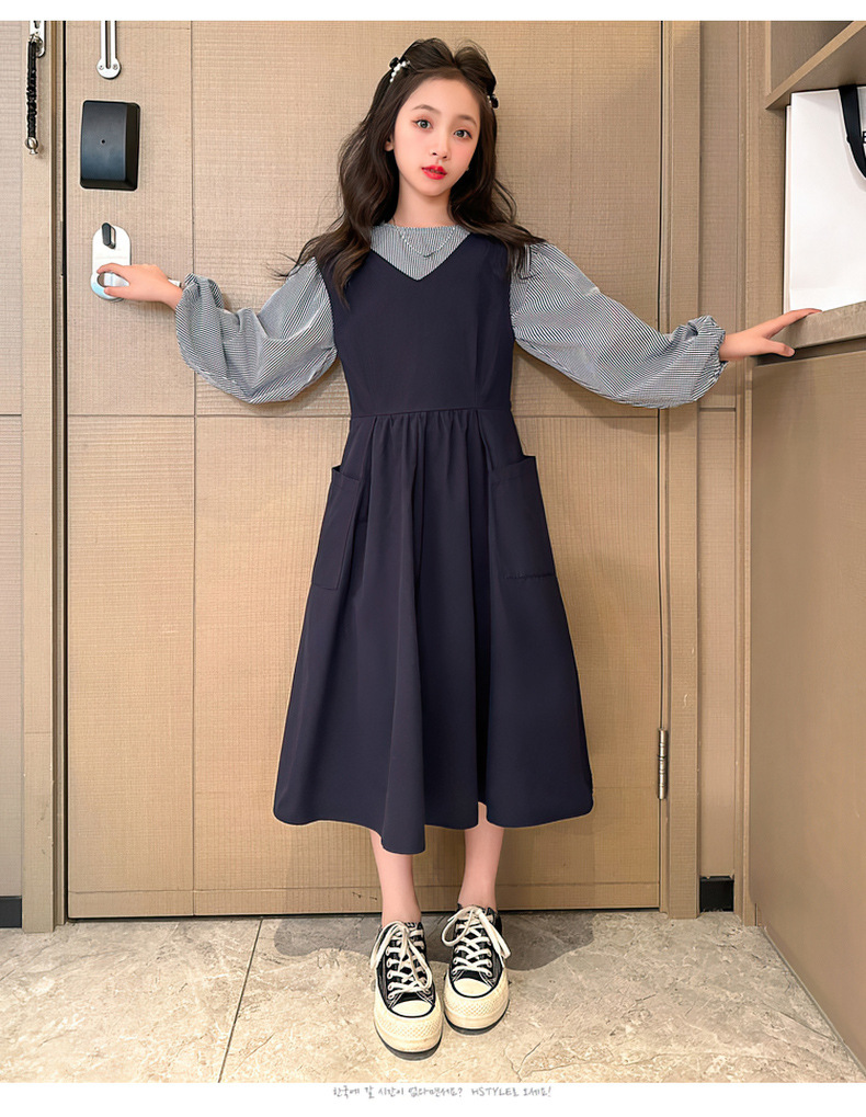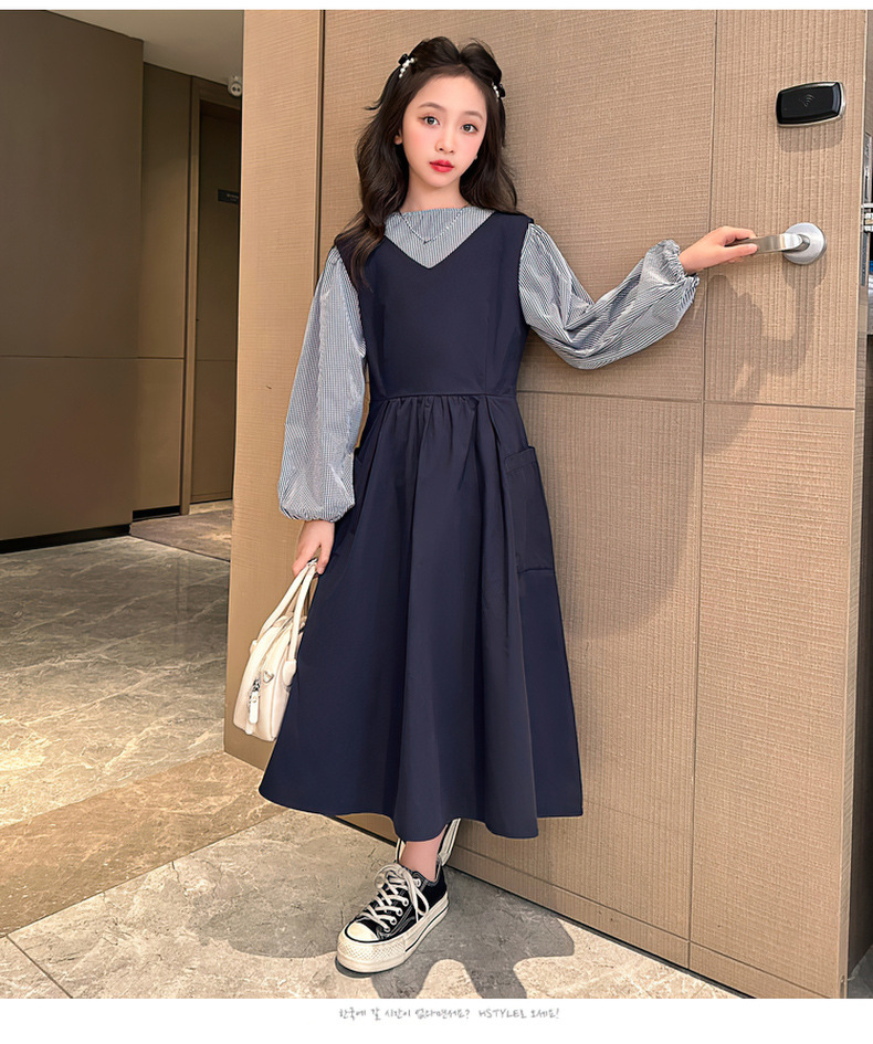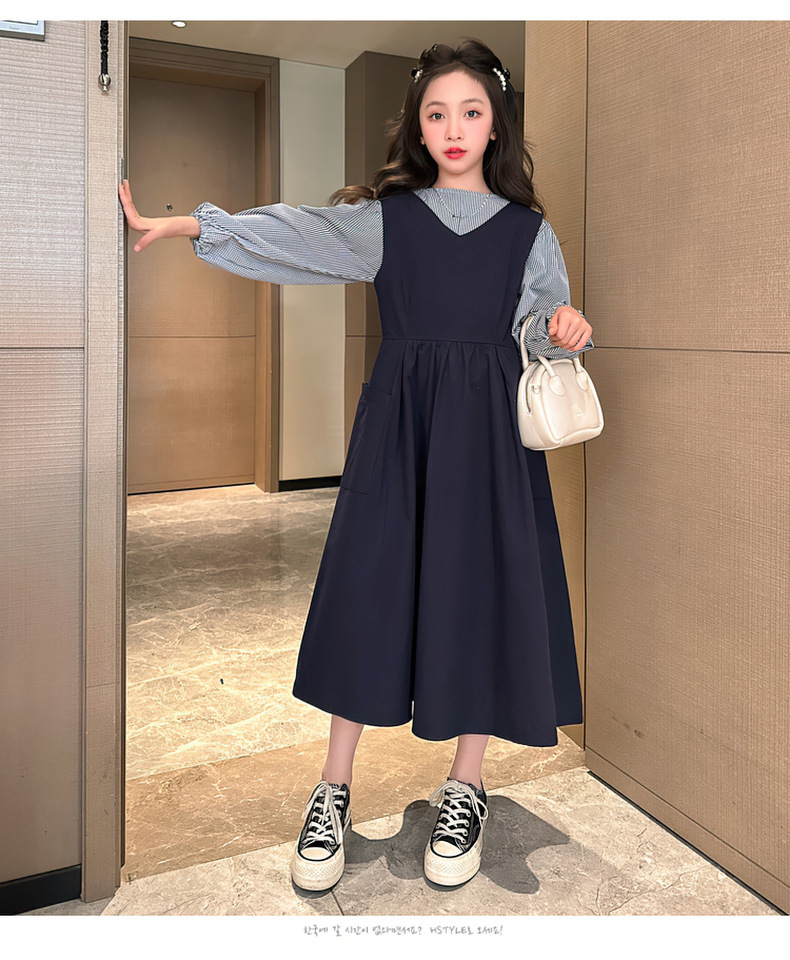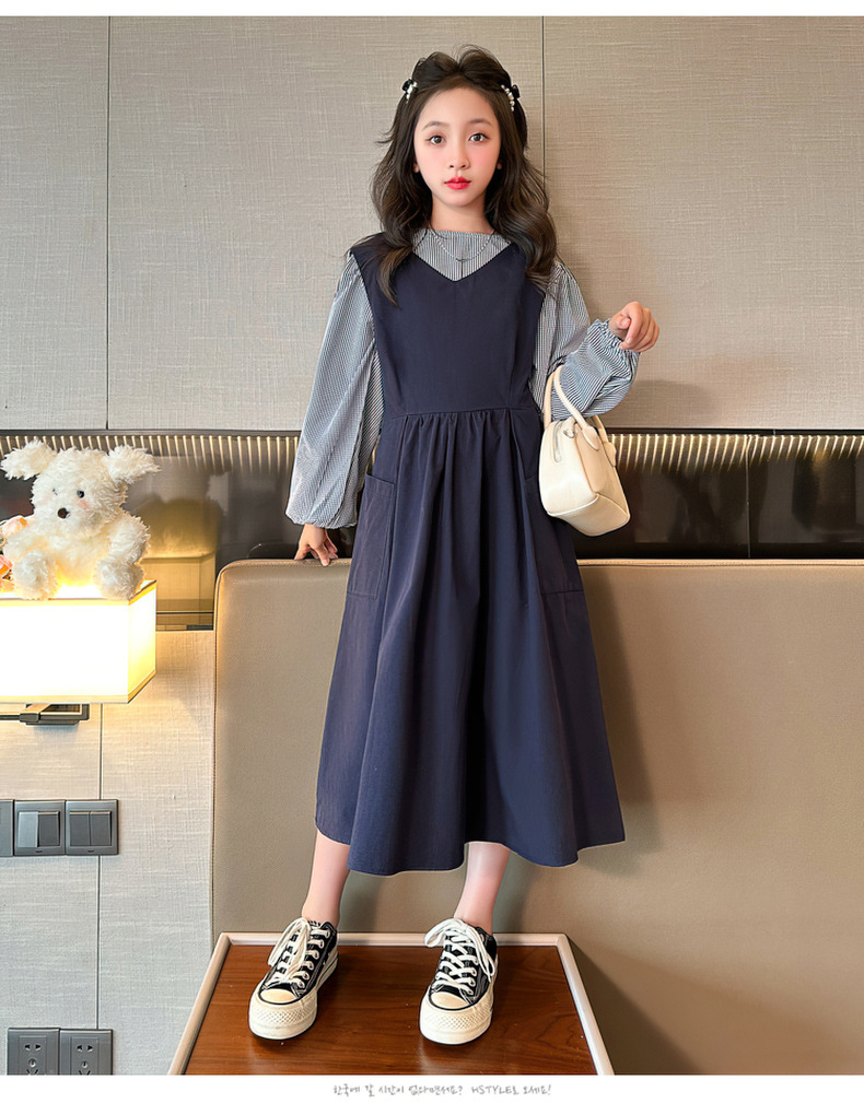 上品な韓国風デザインのキッズ女の子向けロングワンピース2点セットです。