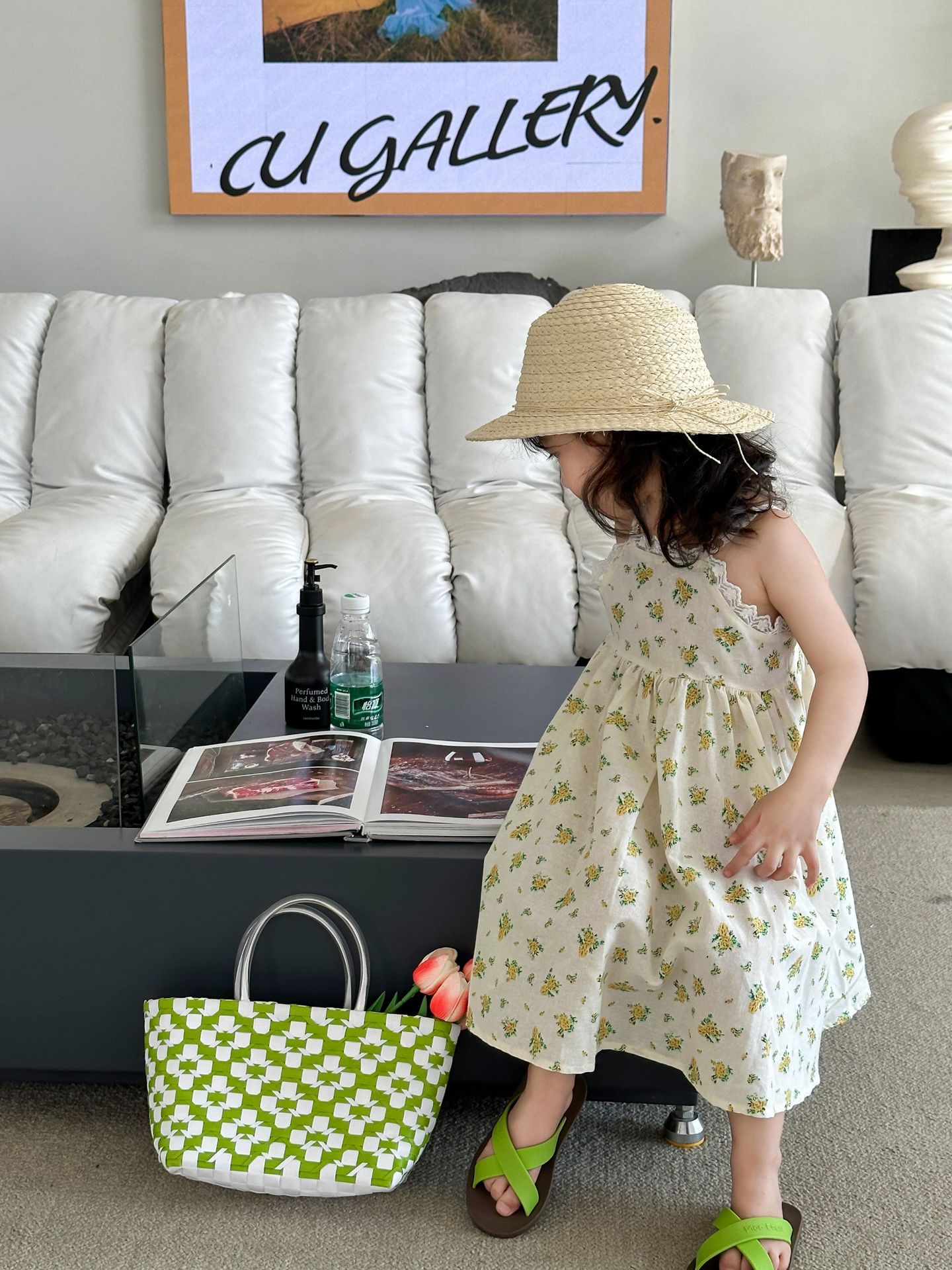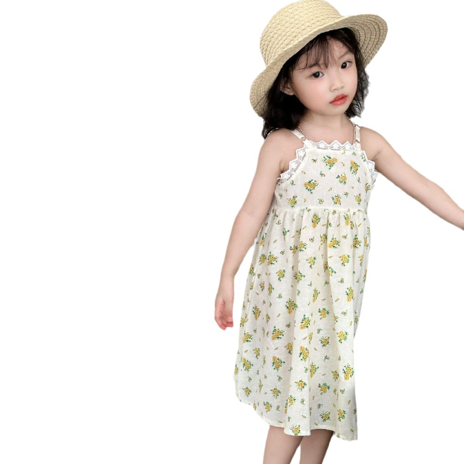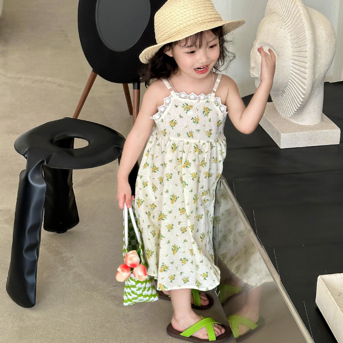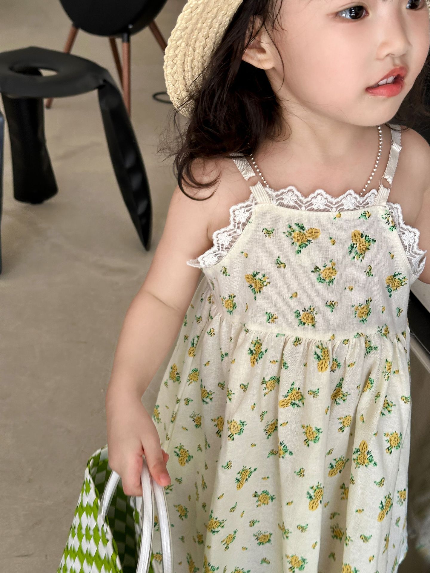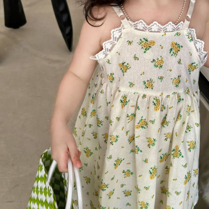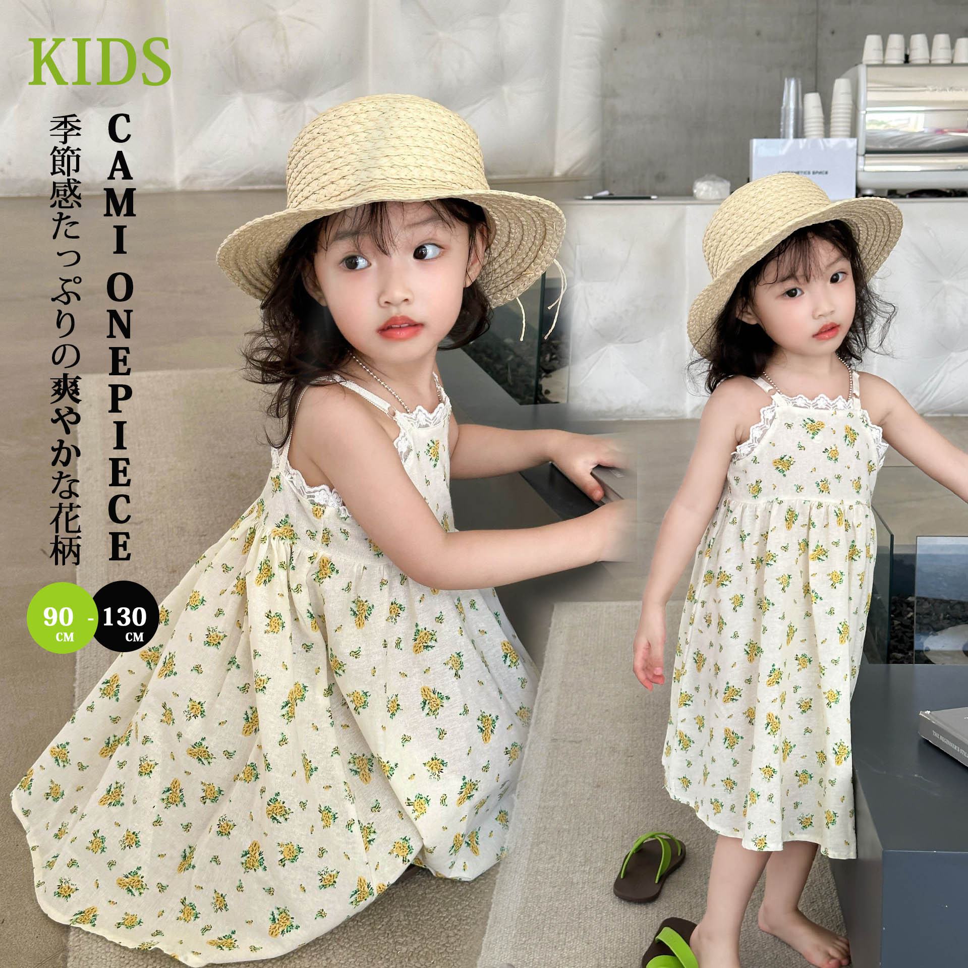 キャミソール型で涼しく、上品なレースと小花柄が女の子らしさを演出。